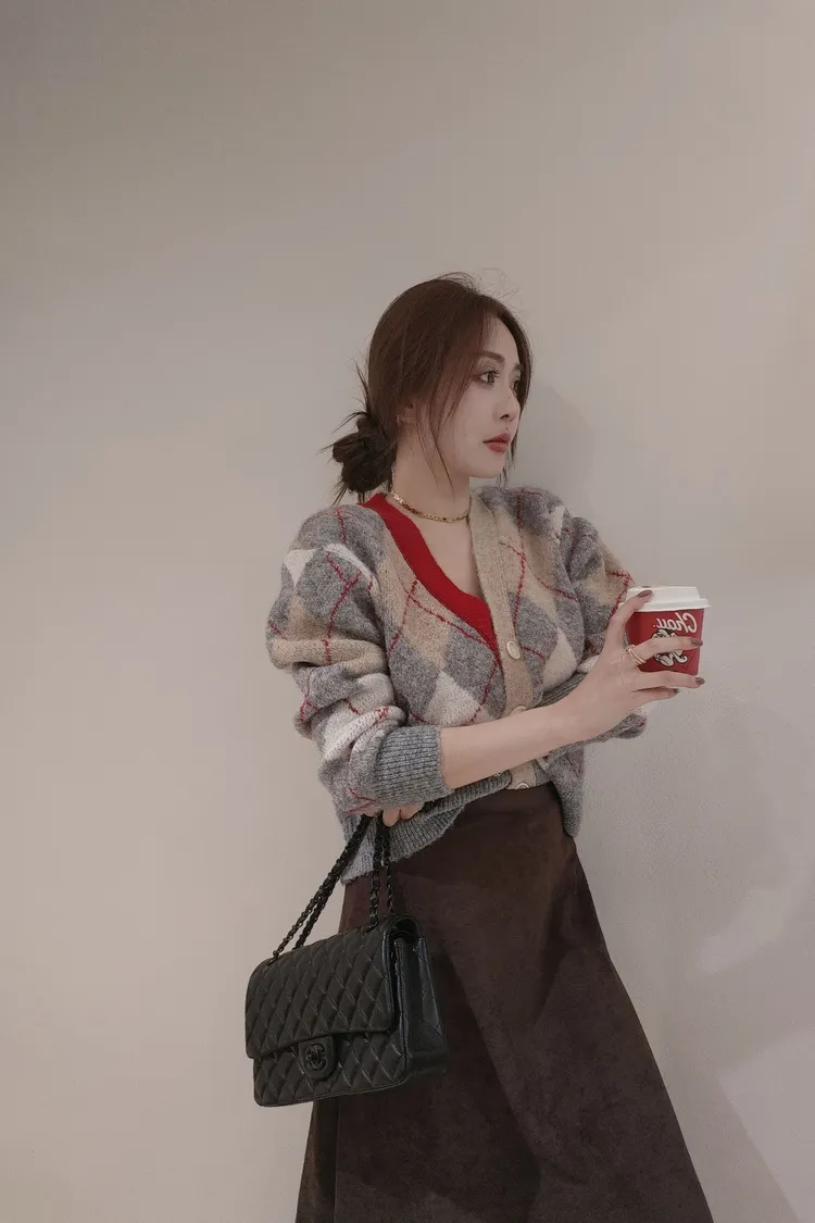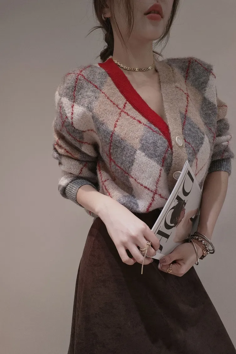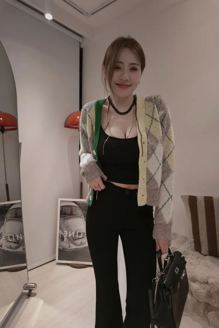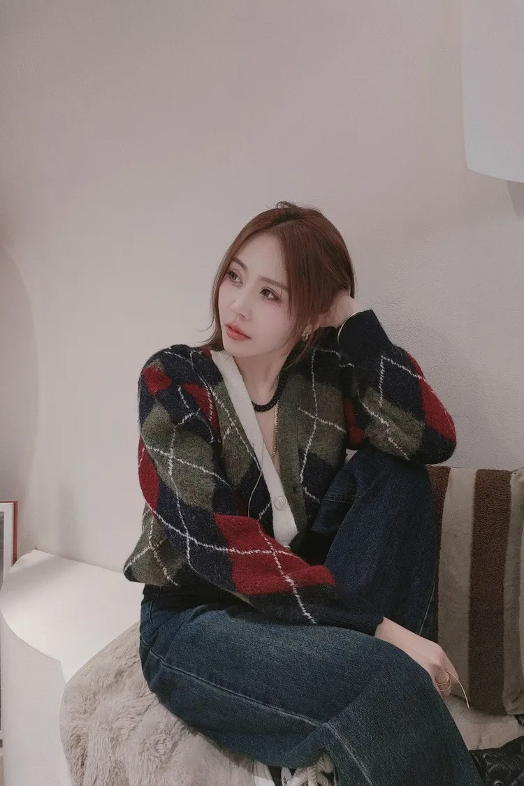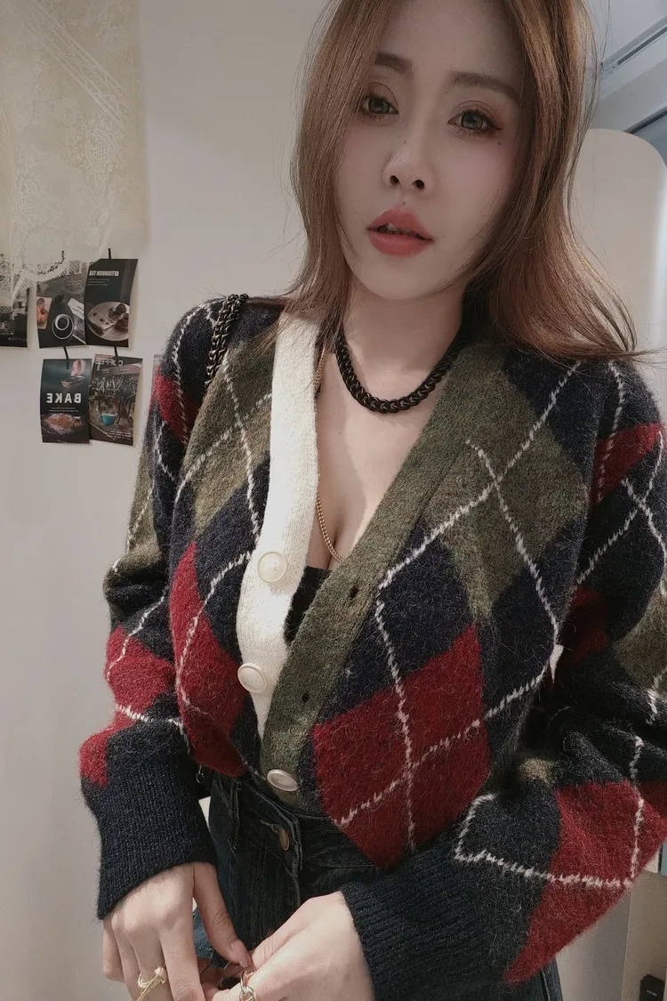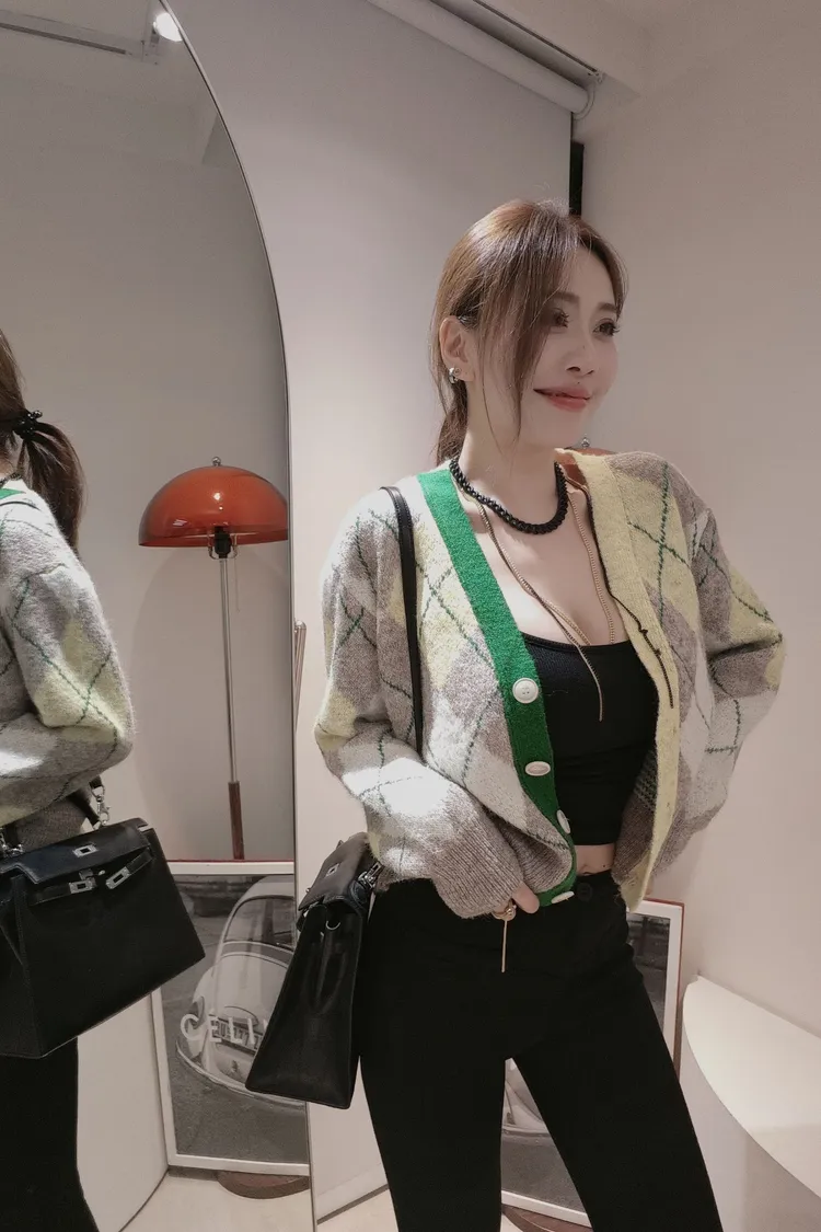 艷彩配色菱格格毛衣