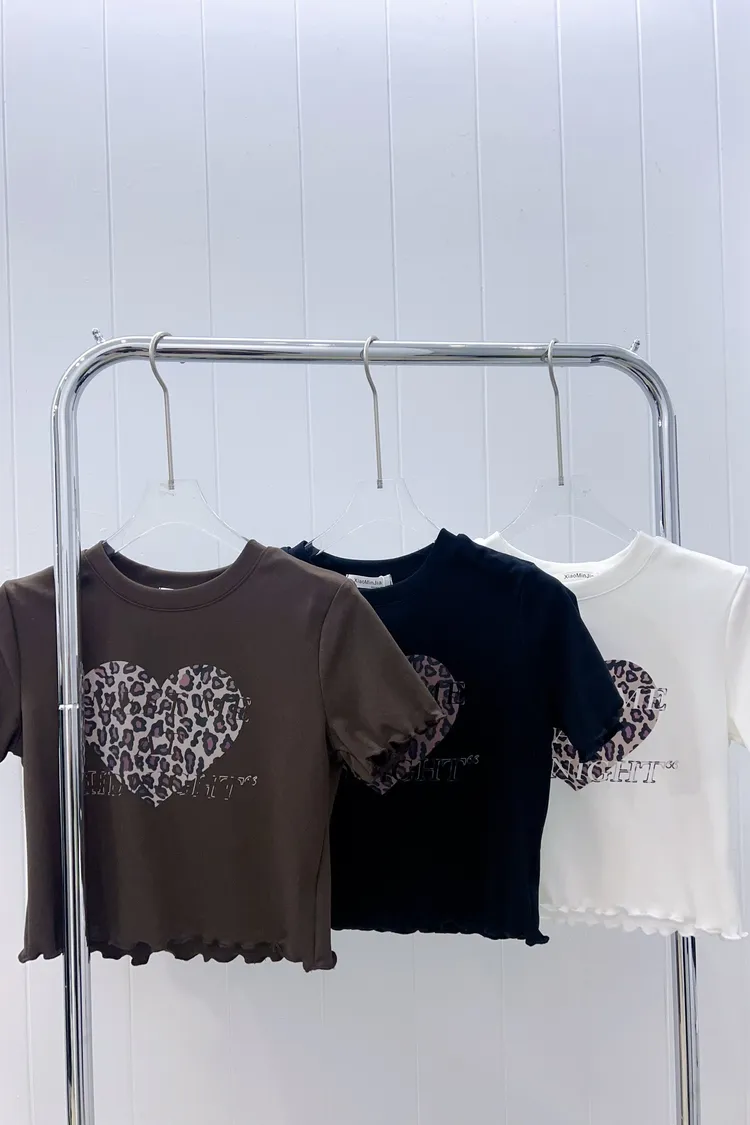 豹紋愛心字母短版上衣