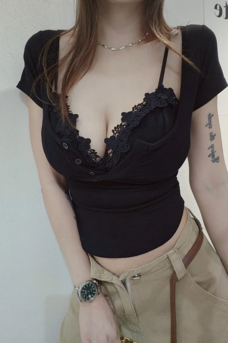 U領開扣T+提花罩杯兩件套