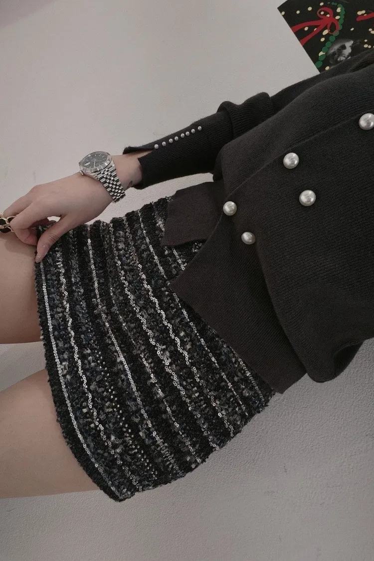 編織毛呢亮片短裙