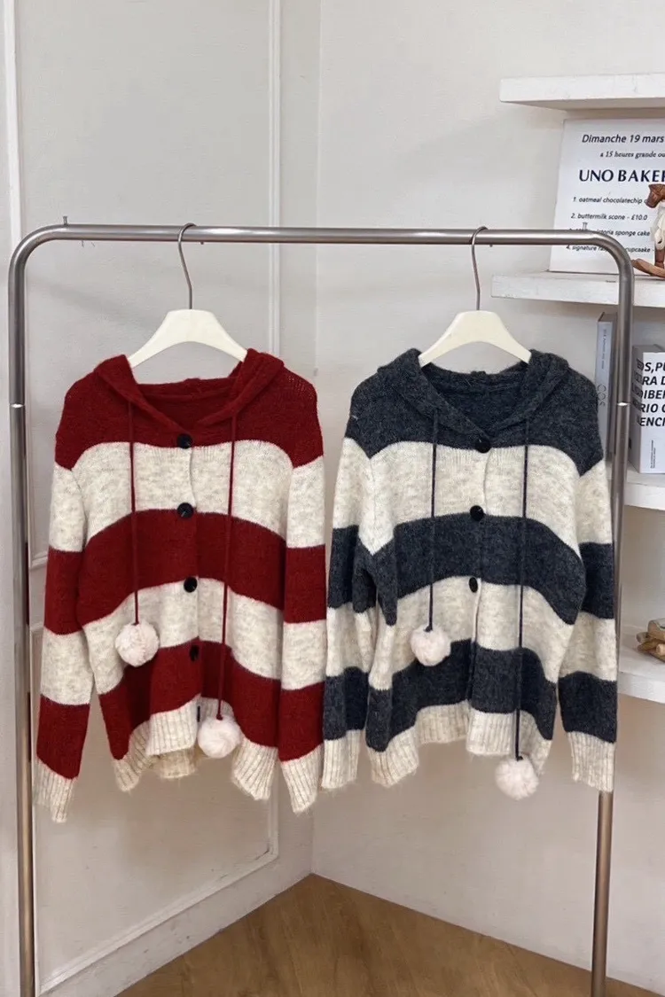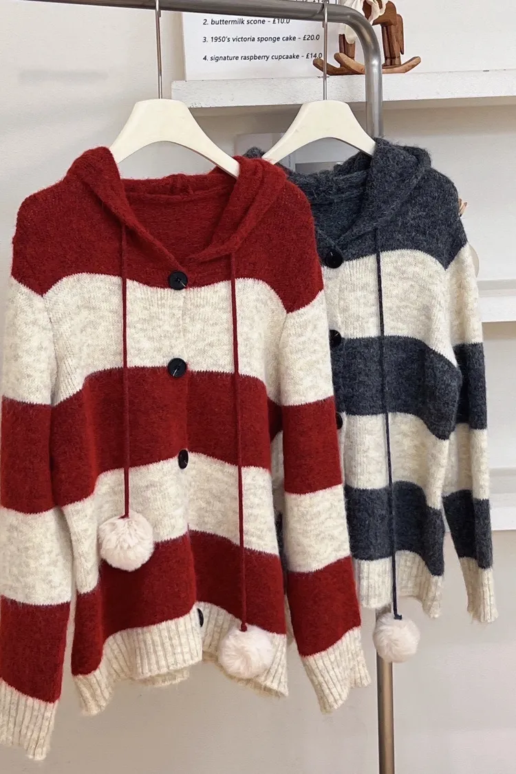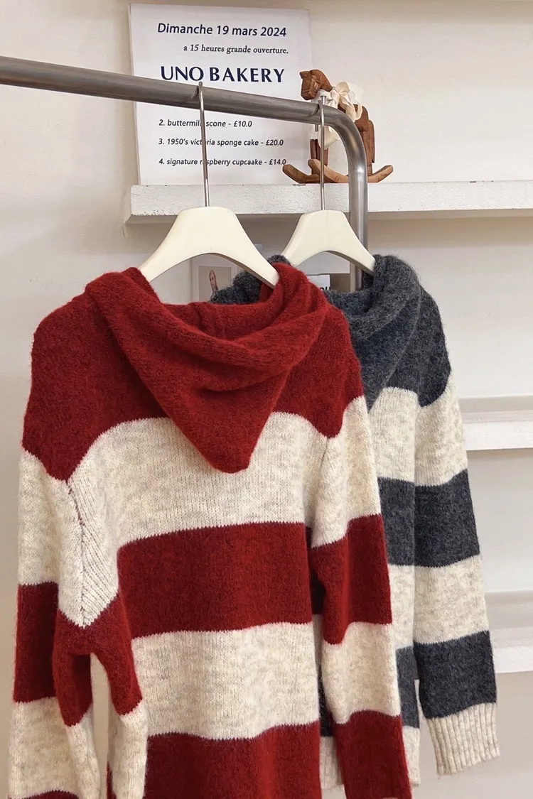 連帽條紋毛衣