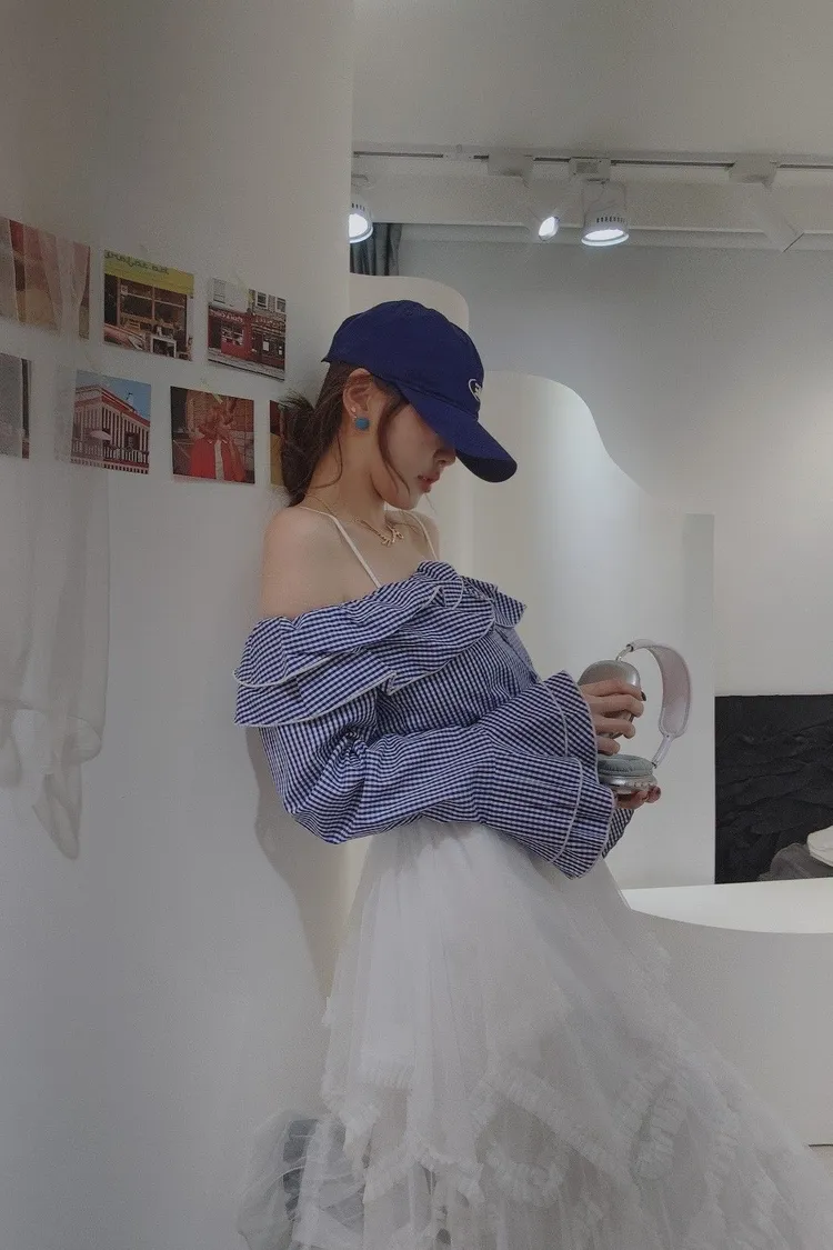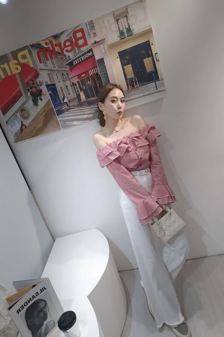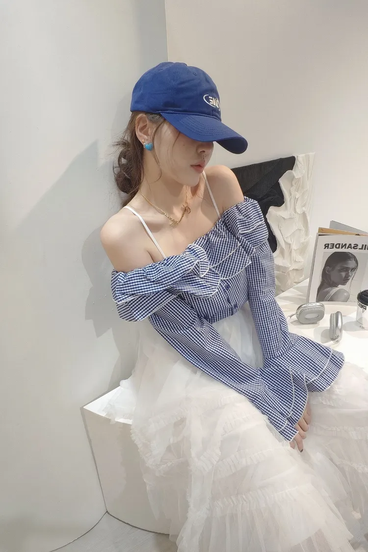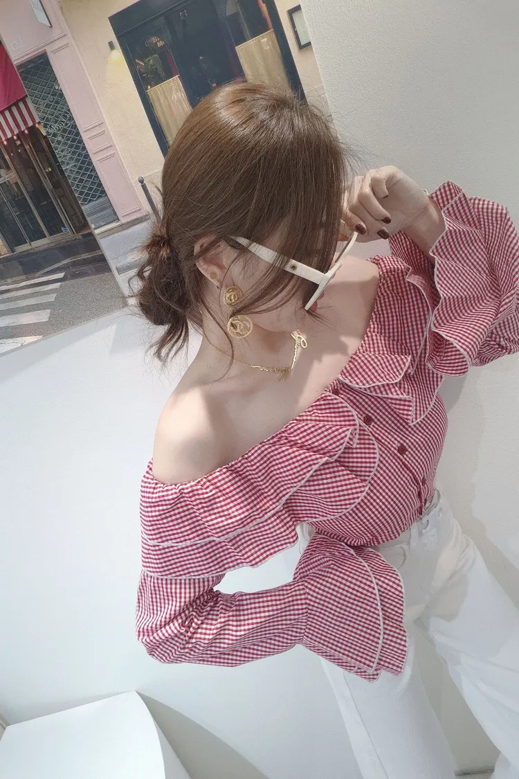 甜蜜細格一字上衣