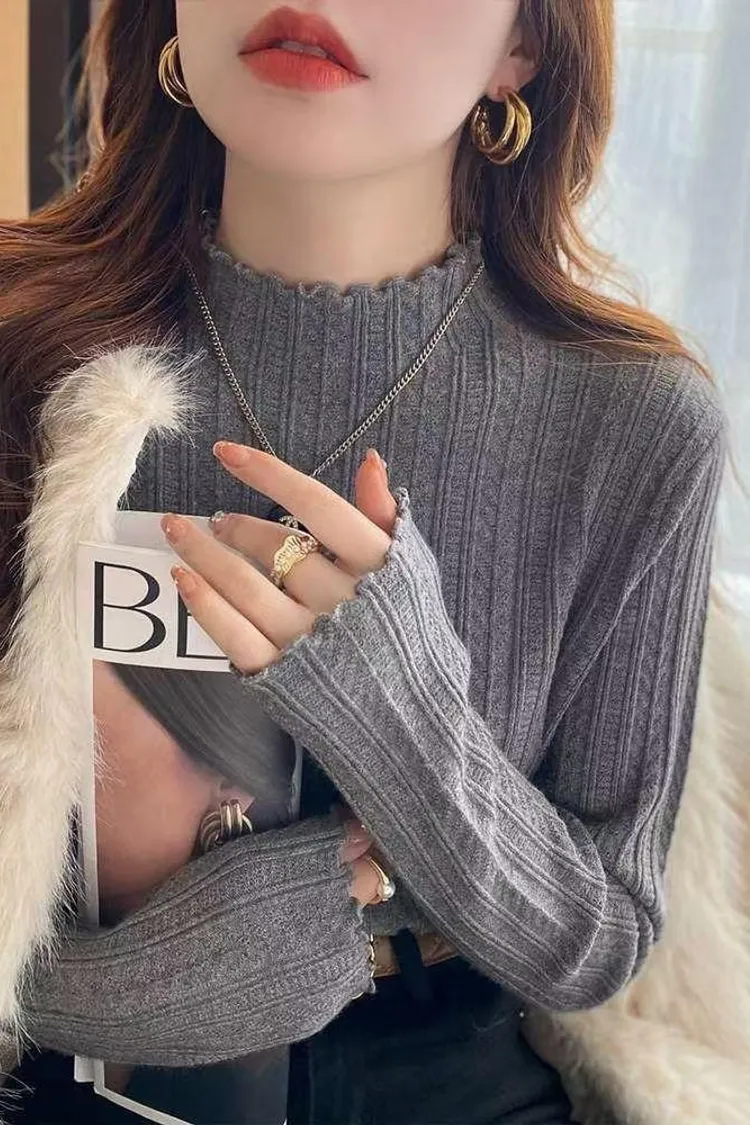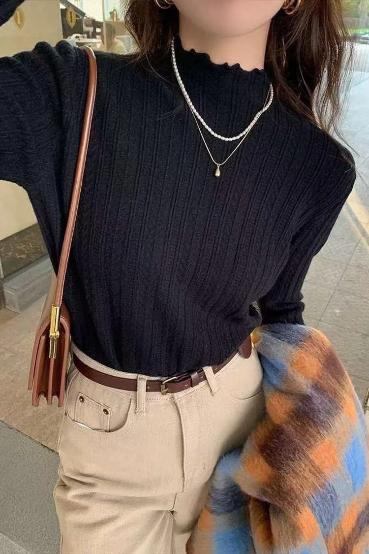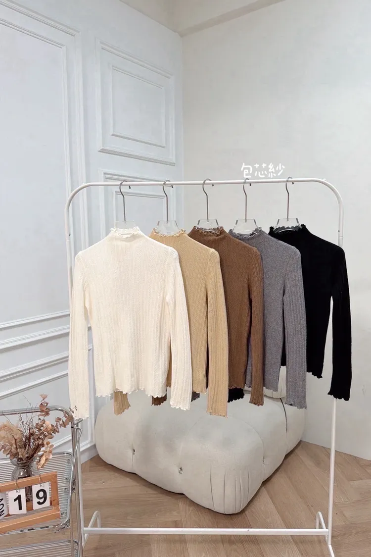 包芯紗木耳立領上衣