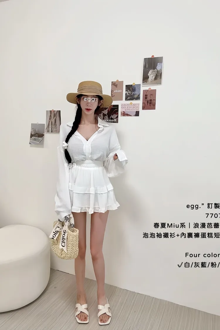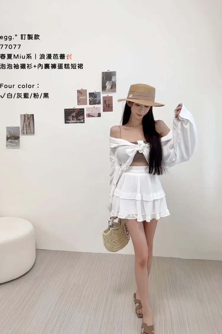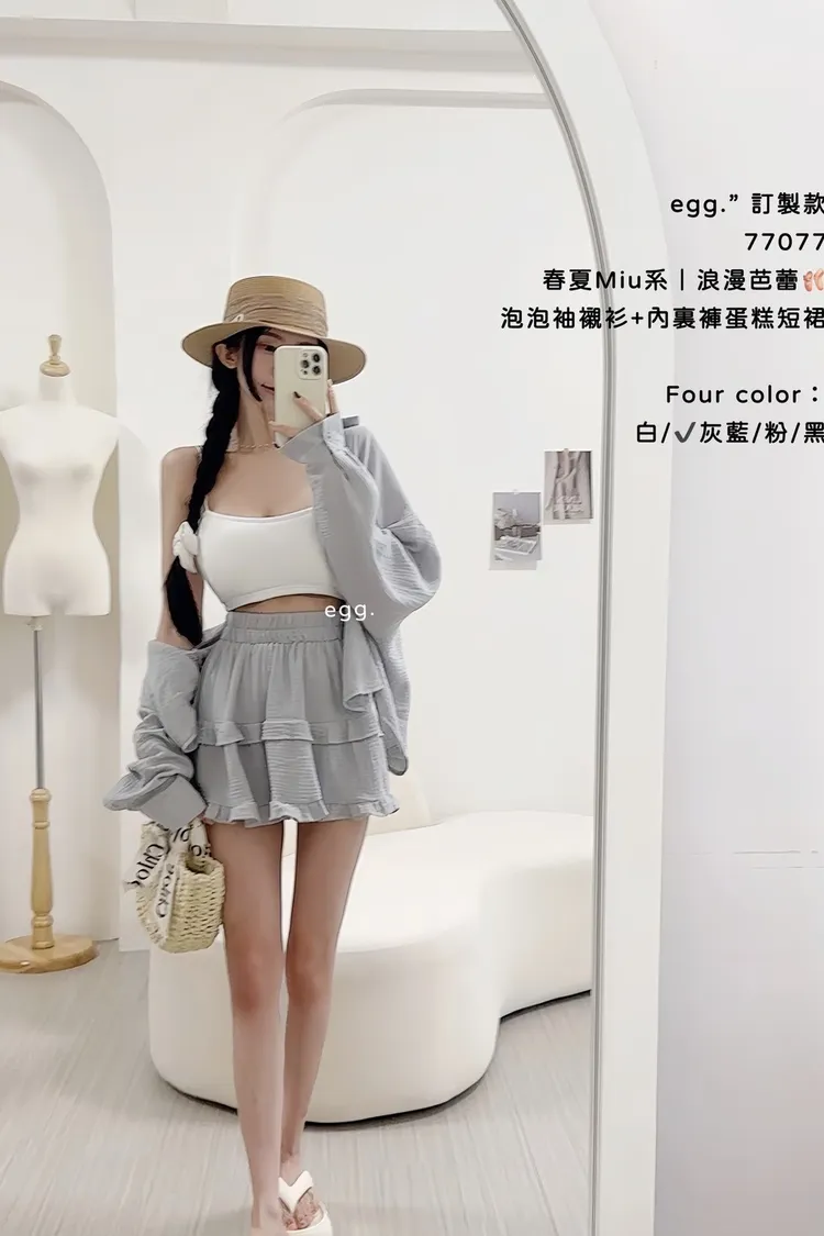 爆訂款✨獨家涼感慵懶面料垂墜又質感滿分💯寬版泡泡袖遮肉肉又防曬+++內紮上衣 外罩防曬都豪豪看😻浪漫蛋糕裙修身拆開穿搭又百搭時髦~~沒有身形限制!!!•必收指數🌟x10000😻•每一色都好浪漫🌹外套防曬遮肉肉 蛋糕裙不挑人穿很顯瘦! Miu系渡假風 🏖️ 必須帶出門+