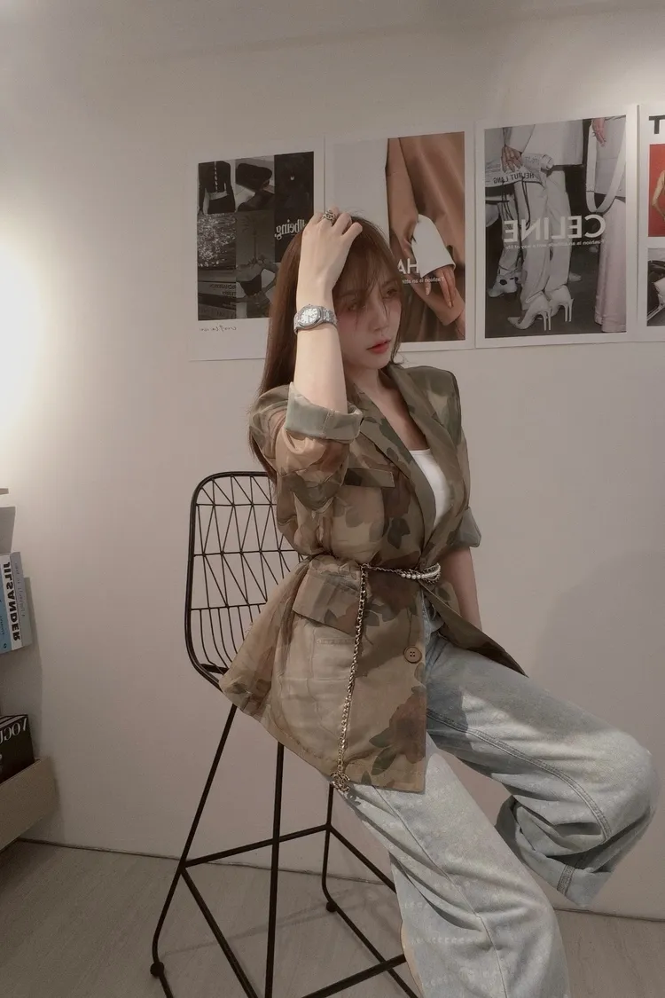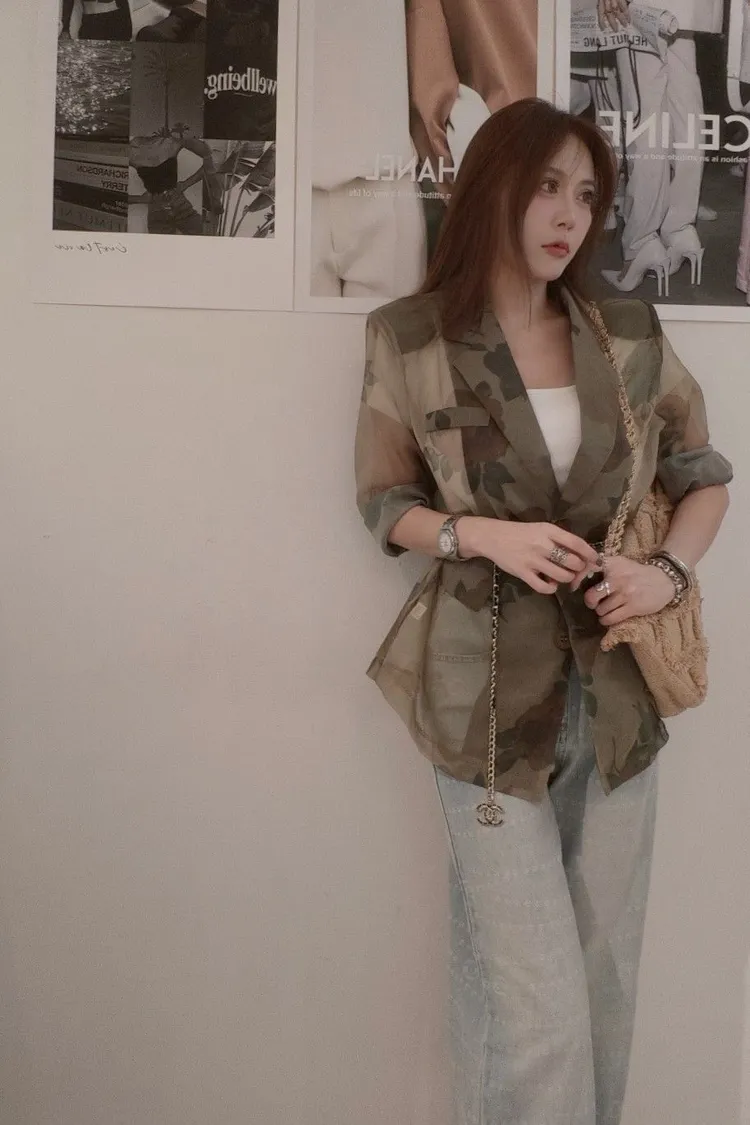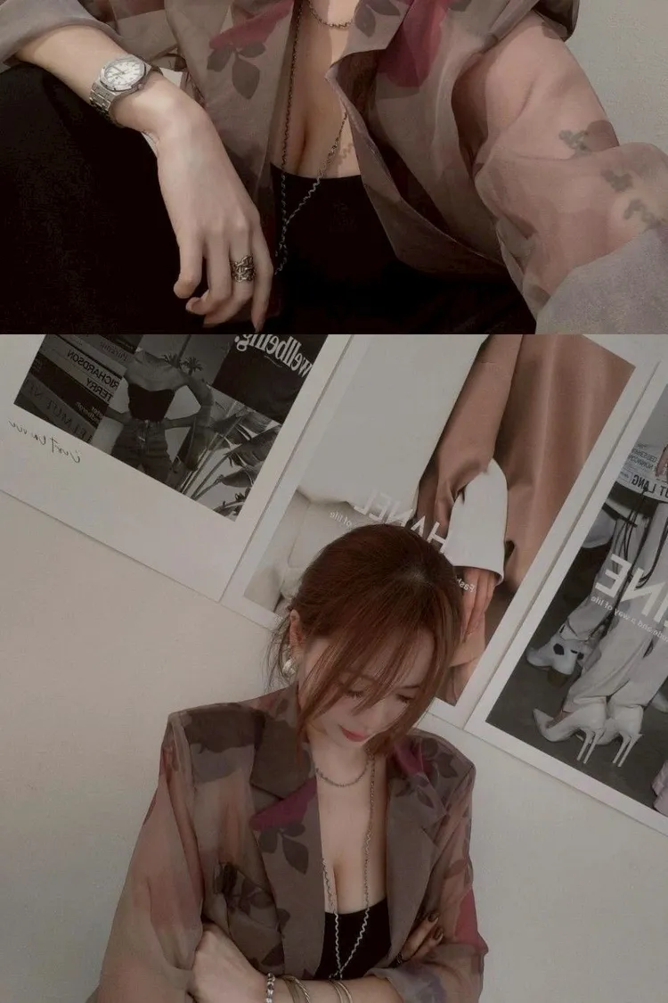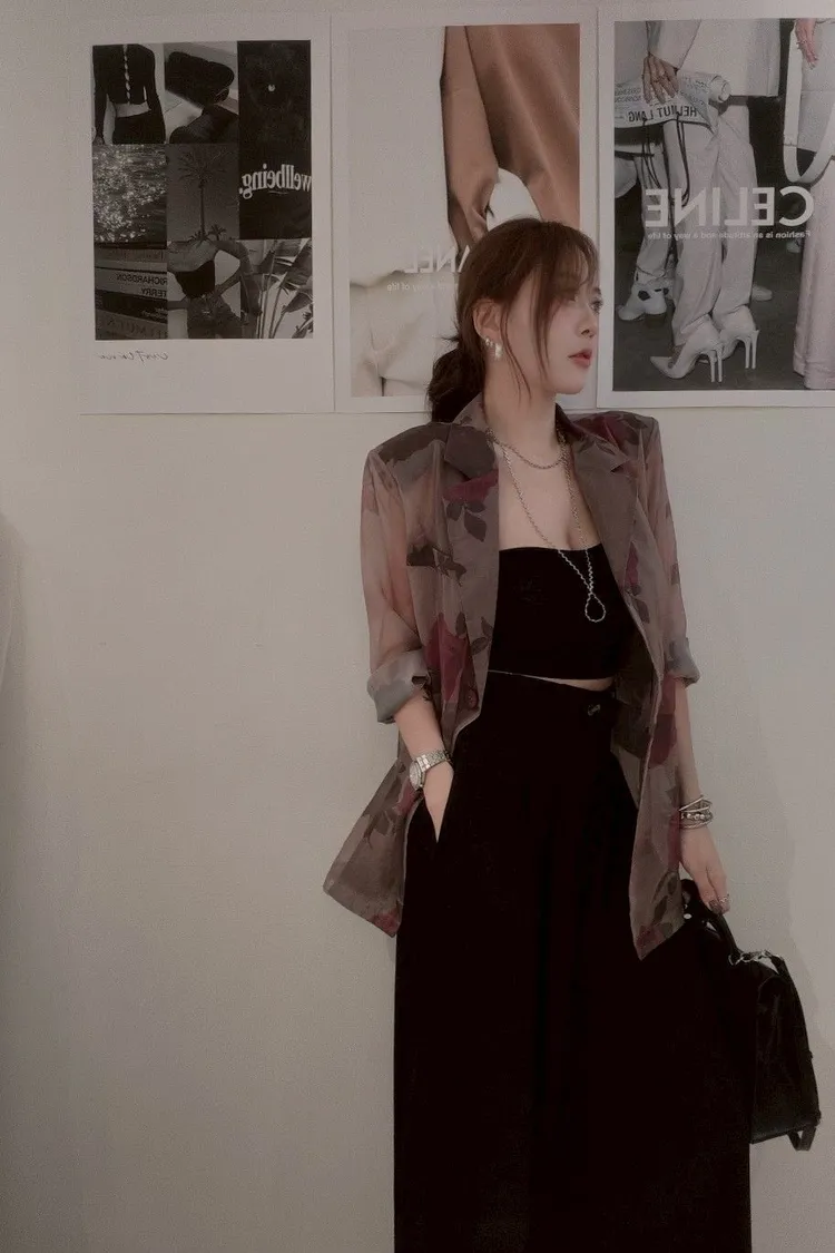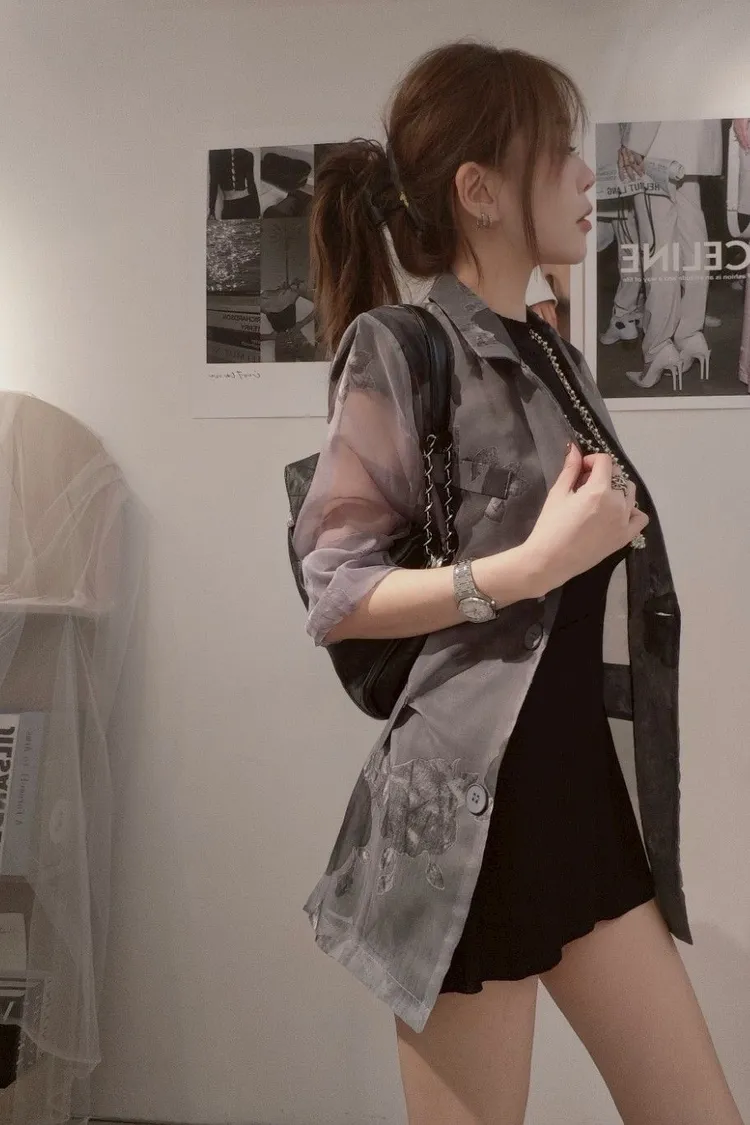 花卉透膚西裝外套
