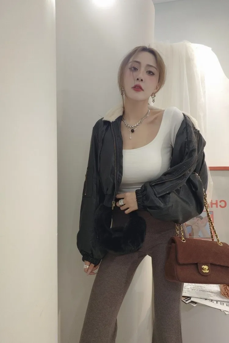 油臘皮羽絨外套