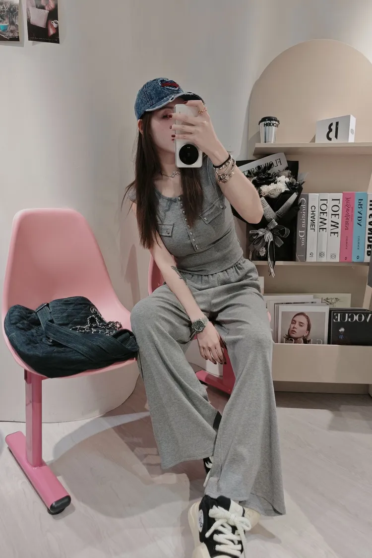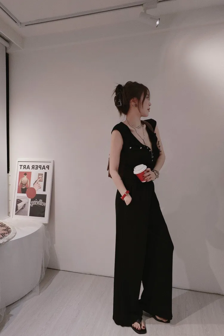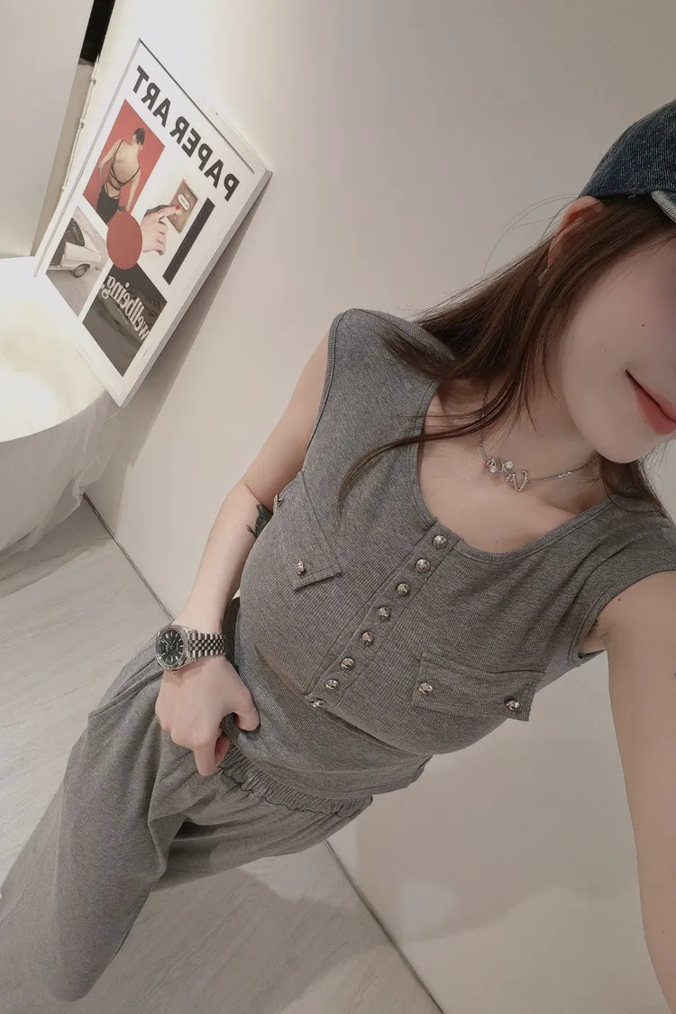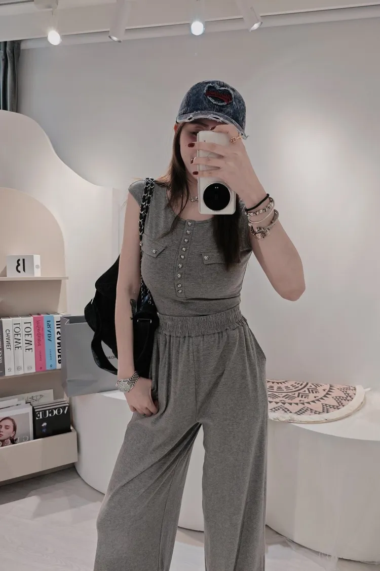 圓釦寬褲套裝