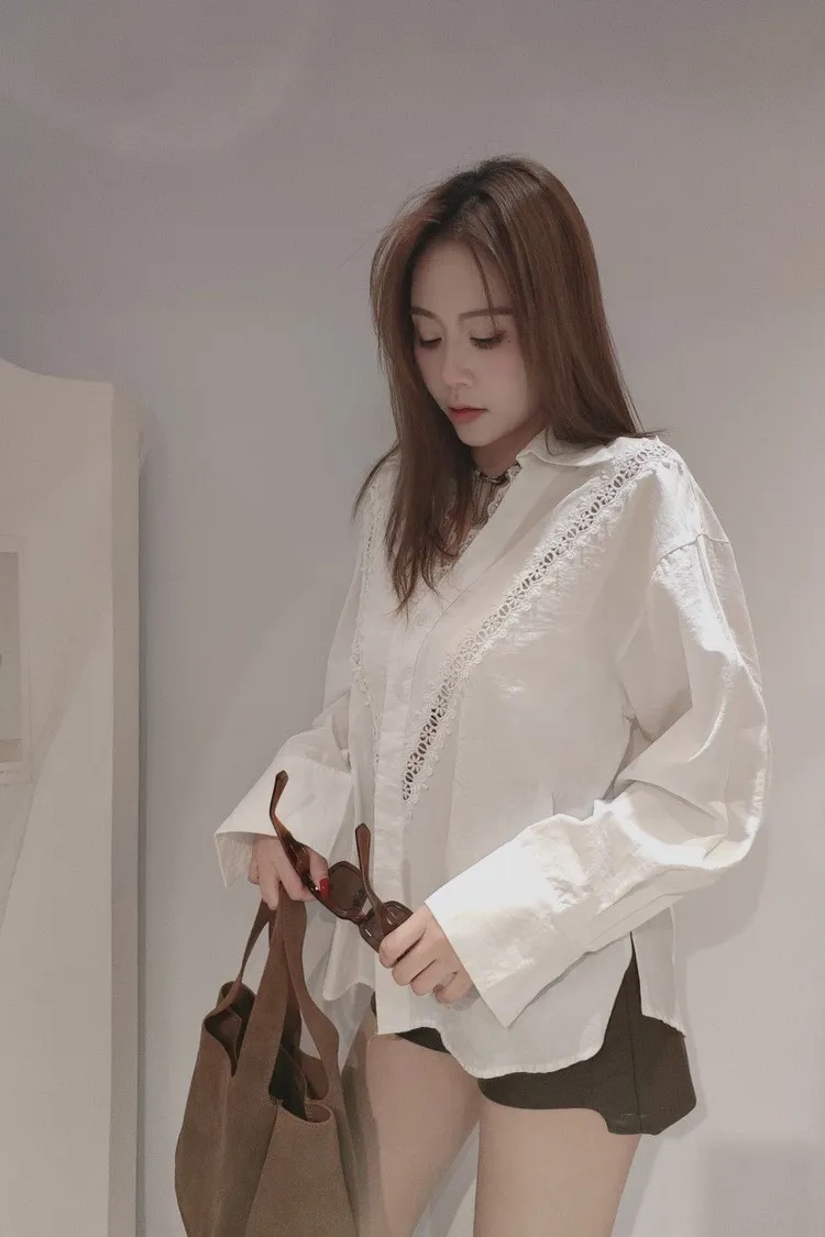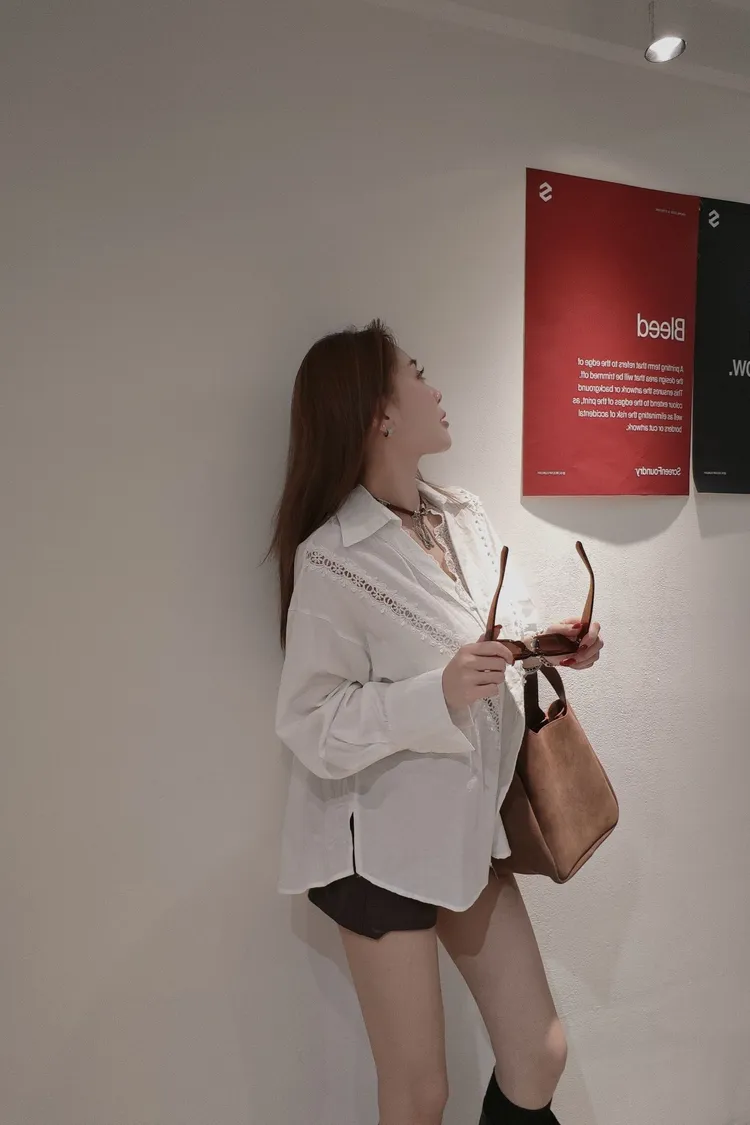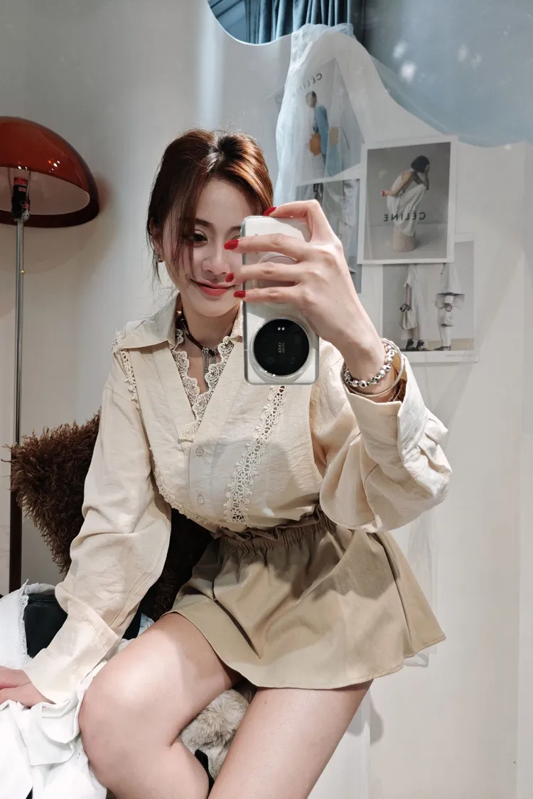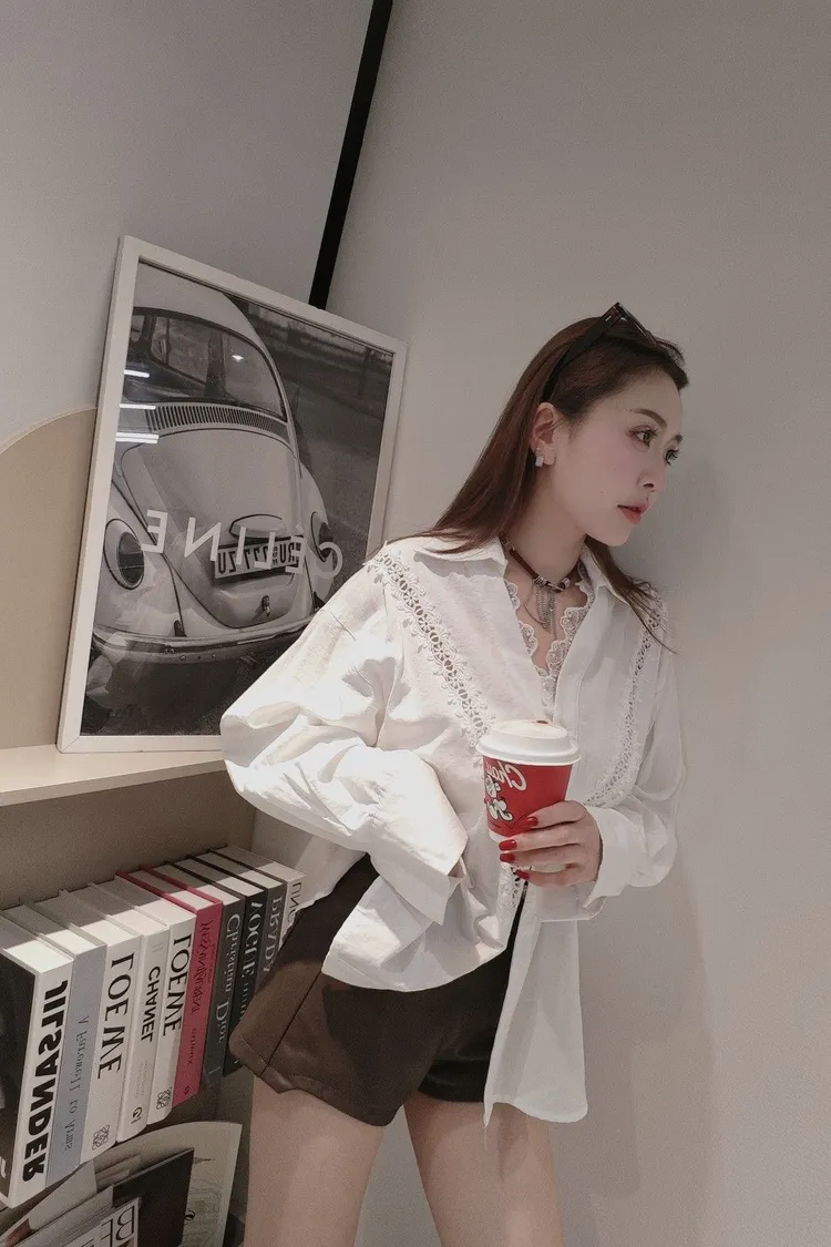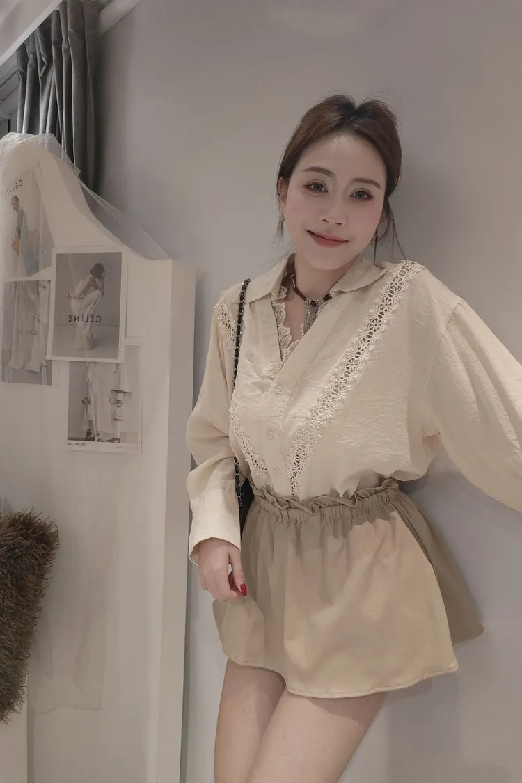 領口拼接細緻蕾絲