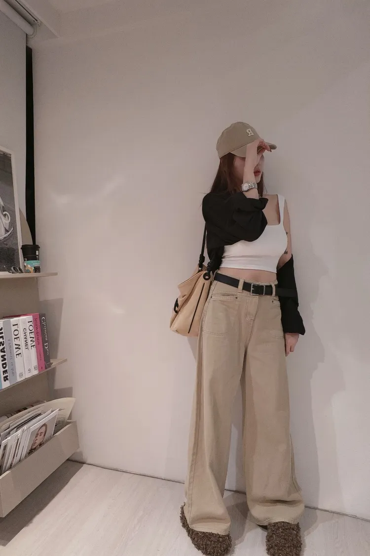 ✦直筒闊腿版型 附皮帶
