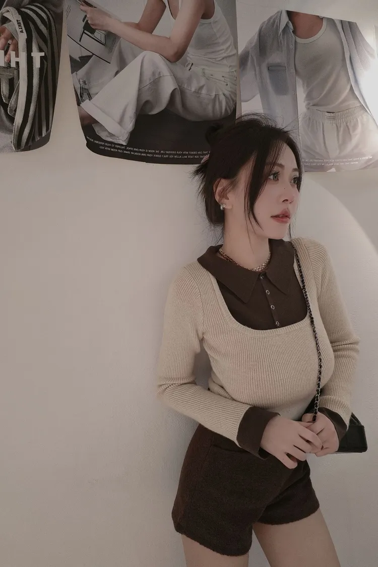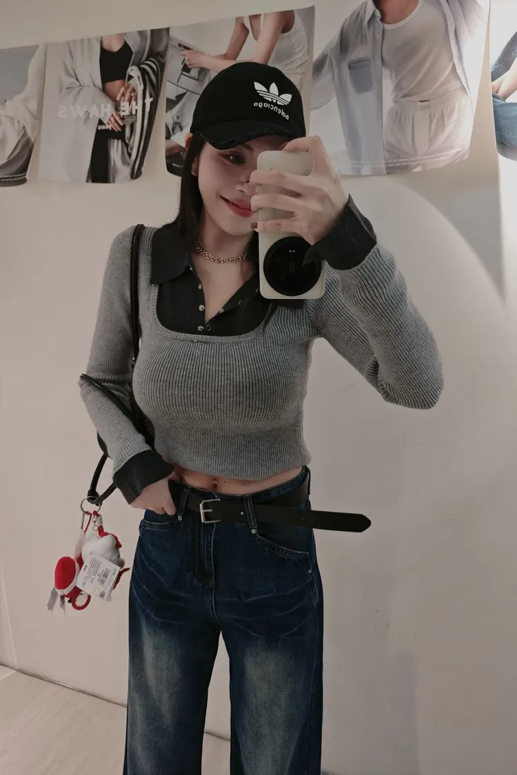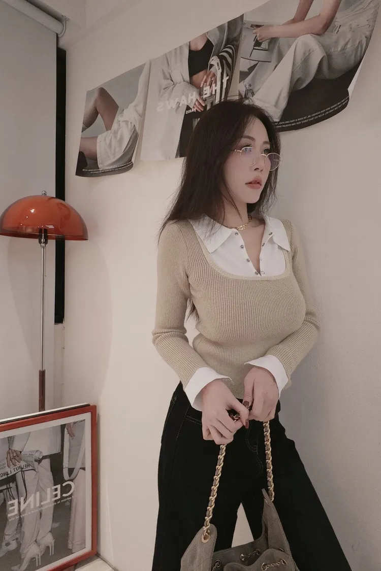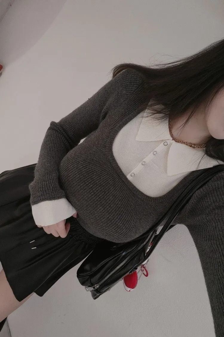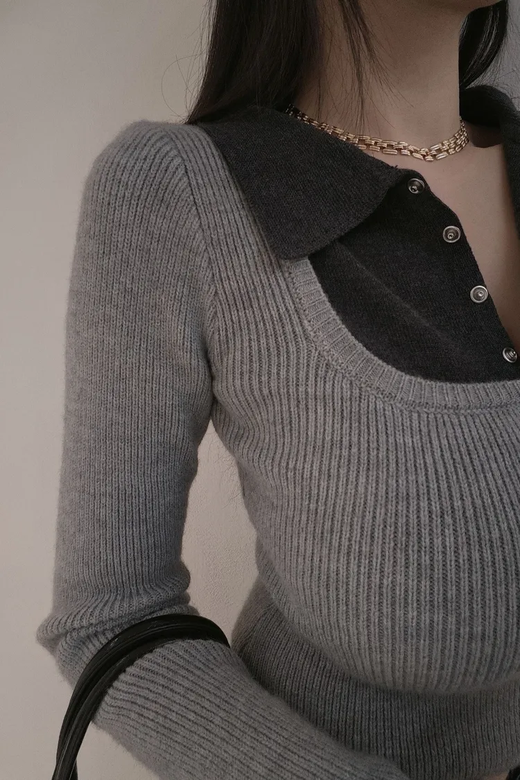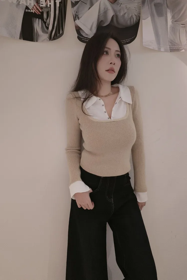 假兩件帶領針織上衣
