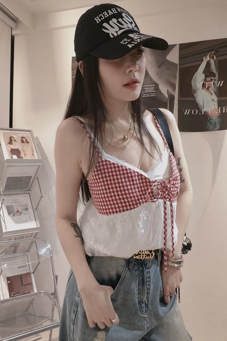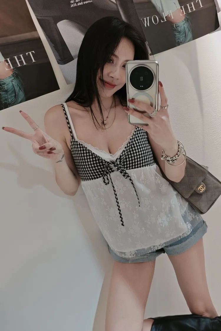 美胸小格紋上衣