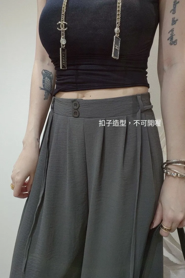 想要遮肉!想要涼涼想要防曬 就入手這條~顯瘦度大加分 附上細繩垂掛在腰間 性價比太高啦 褲檔低,大腿肉再多也不怕被發現 ⚠️褲長約99公分 ⚠️彈力均碼,S-2XL都能穿 ⚠️杏色配膚色內褲穿能見度0 顏色:灰 黑 莓 杏