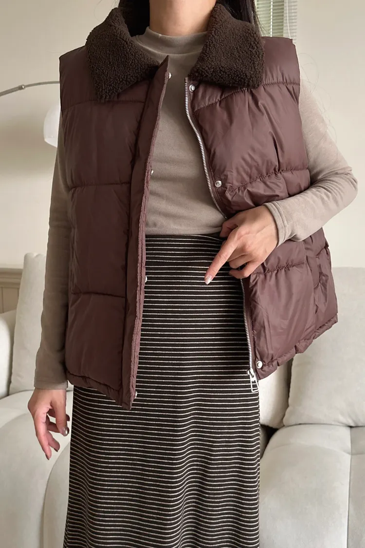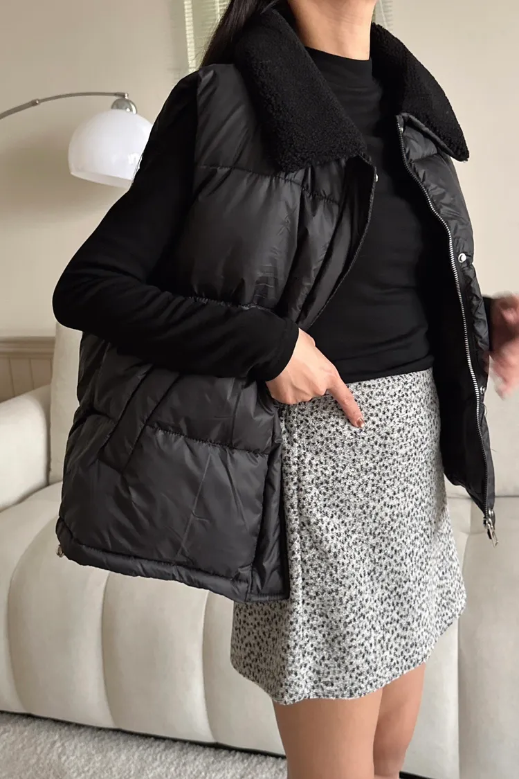 羊羔毛領麵包背心