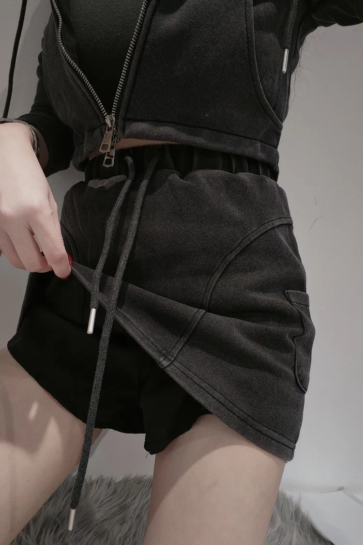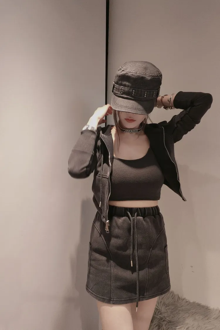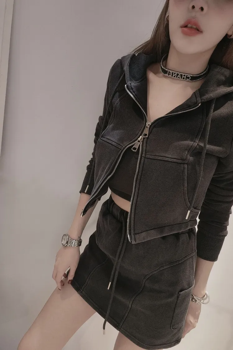 肩寬40 胸寬42 衣長41腰寬26~36 臀寬42 裙長37✦外套加裙子一套便利出門✦穿拍內搭配#5943墨灰色✦建議𝐒𝐌身形女孩購買帥氣女孩必備款鬆緊腰包裙內裡有加褲子省去再穿安全褲外套則是採用上下雙開拉鍊在工藝部分立體車線更好看顏色:圖片色