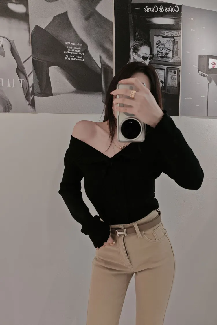 小翻領捲邊可以拉成一字肩