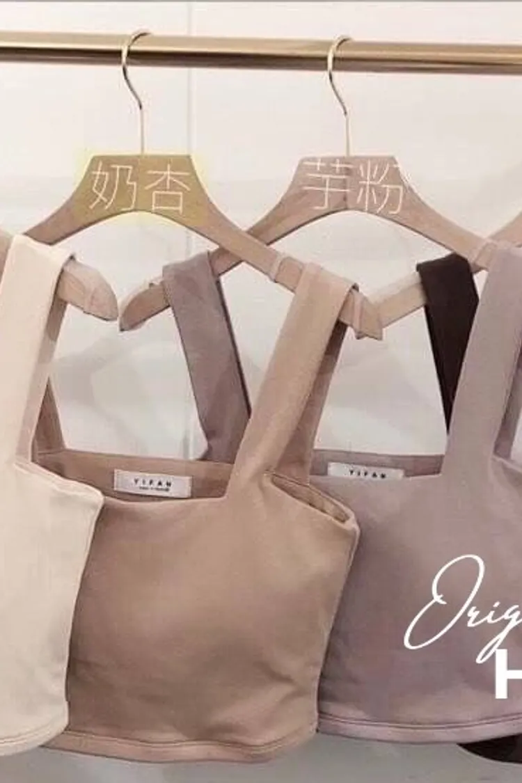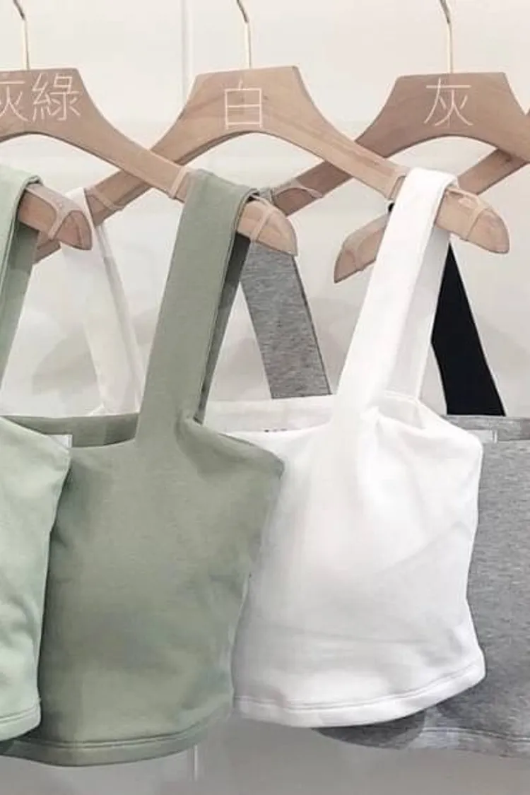 韓國熱銷系列又來拉!!方領超顯瘦~韓國棉超舒福 不刺內內唷白/杏/果綠/灰綠/芋粉/灰/奶茶/咖/黑美美的 𝟗色任妳們搭內墊一片式不跑杯 可拆