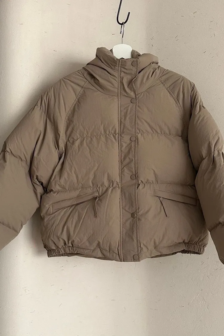 爆款🔥天氣明顯轉涼嘍☁️新增色[咖啡]🤎🤎唰唰感布料材質 保暖鋪棉內層拉鍊 外層釦子雙層防風🌬️立領連帽設計 把你包的嚴嚴實實兩側口袋是有做拉鍊的收納小東西很方便!肩寬64 衣長60顏色:杏 卡 咖 灰 黑