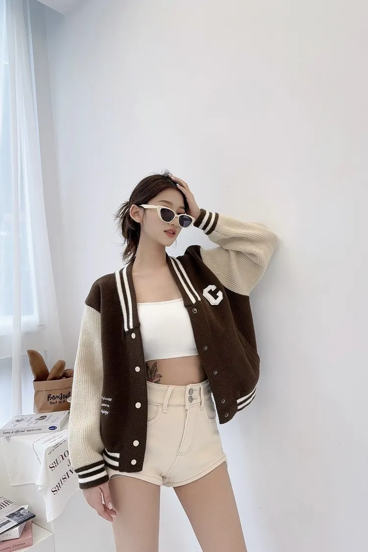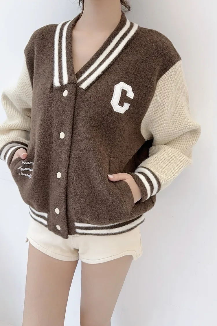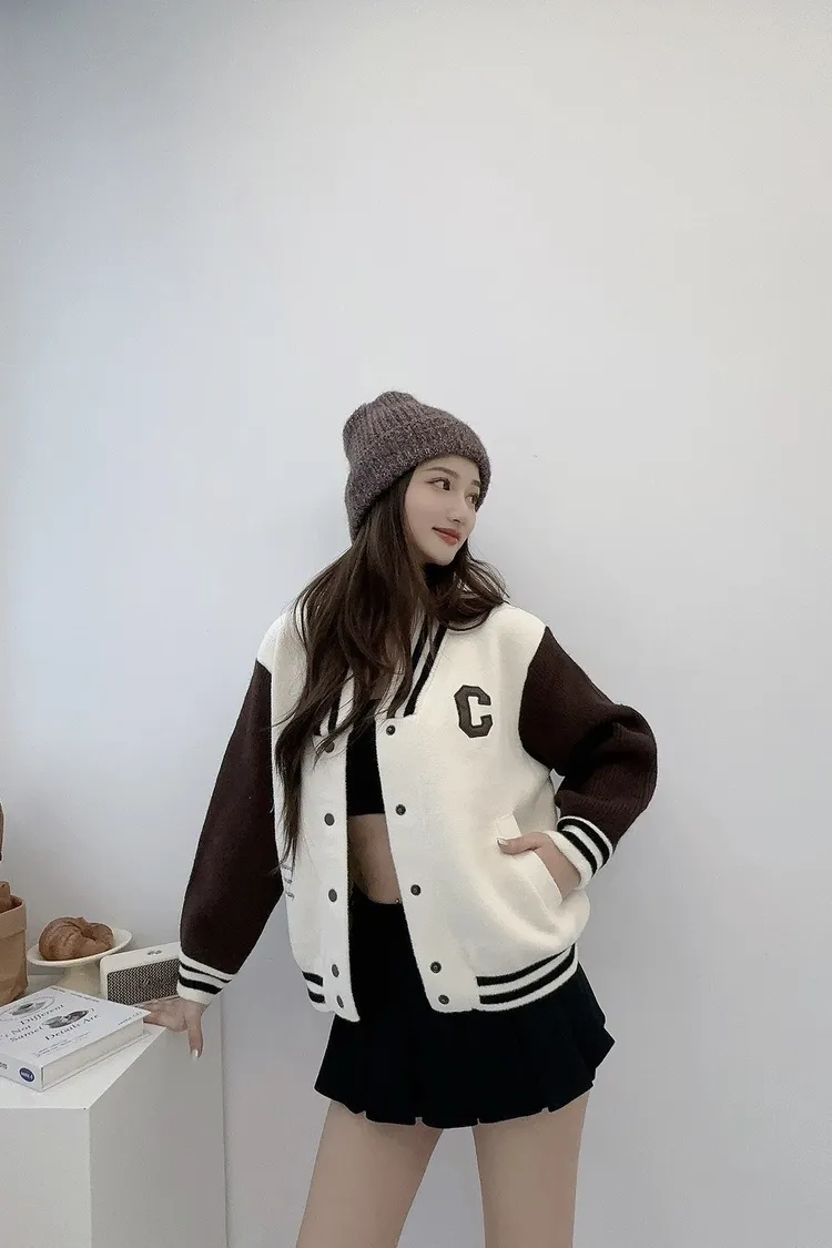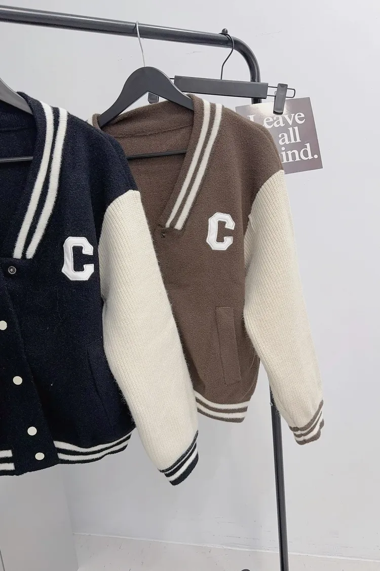 厚磅針織拼接撞色棒球口袋外