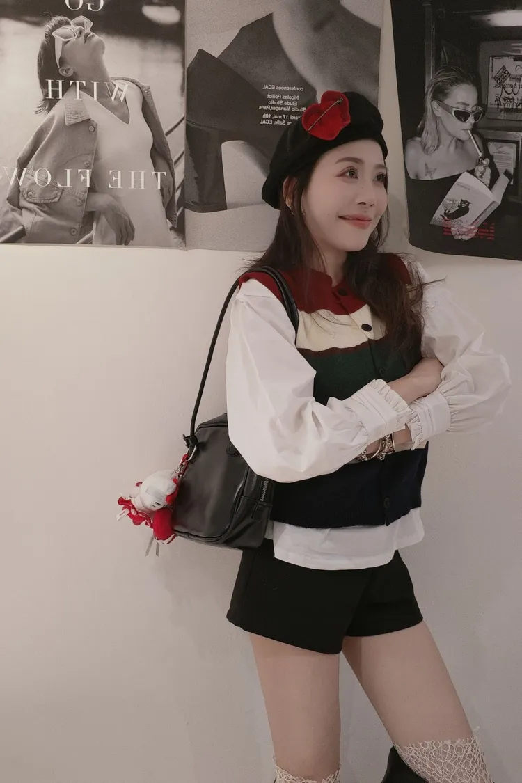 彩針織背心兩件套