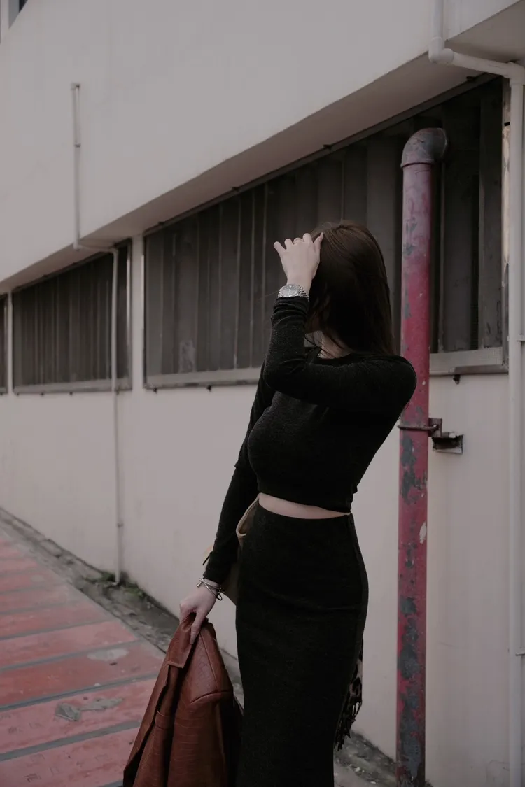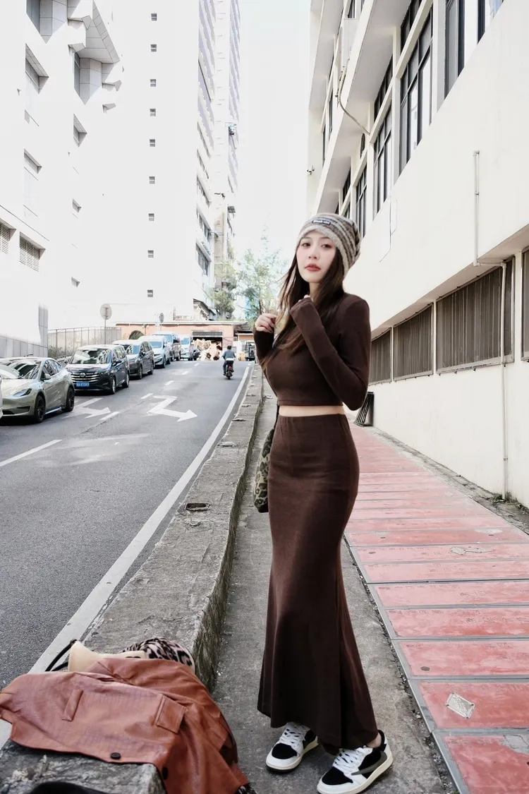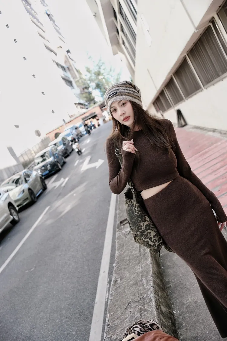 -建議SM女孩穿-細緻針織高密度用料-不扎肉!不刺癢-無墊肩 無罩杯-面料微彈力唷✔️圖片拍出來黑跟深灰比較像看實品平拍最準!!上衣肩寬35胸寬37袖長62衣長37裙子腰寬28~34臀寬36~40裙長94