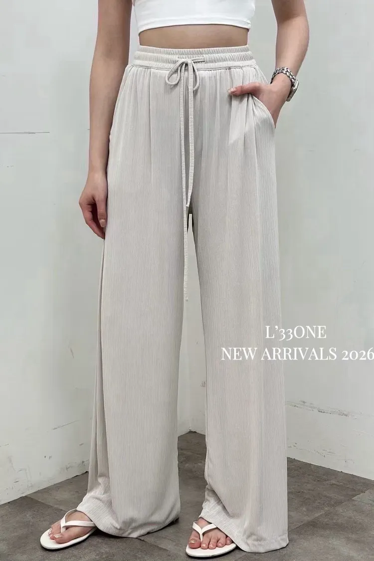 超涼坑條落地寬褲