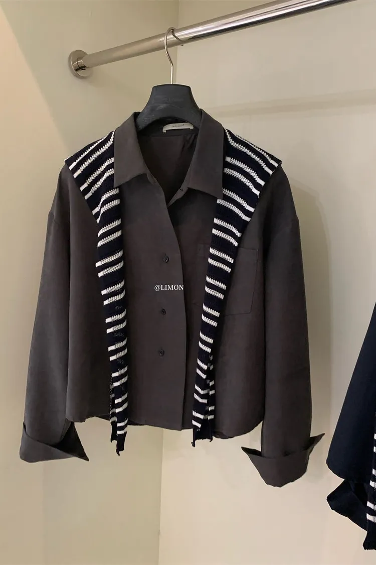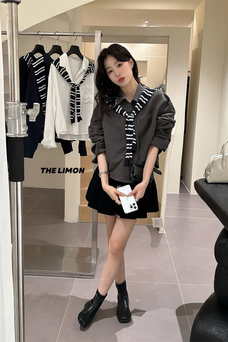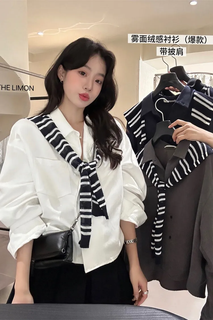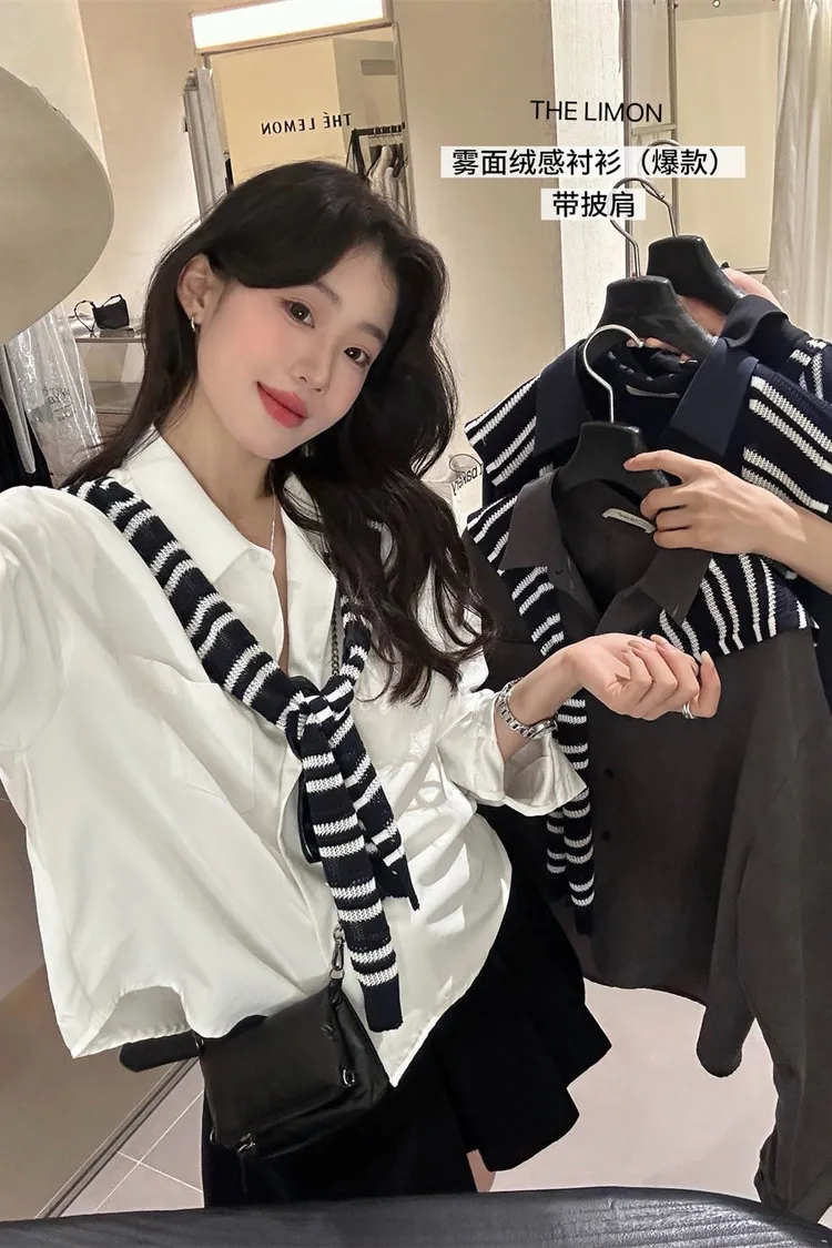 霧面絨襯衫+披肩