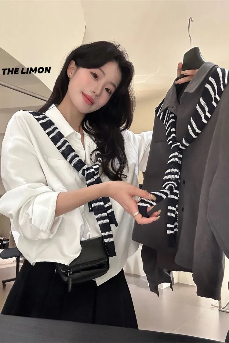 條紋披肩讓素色襯衫不無聊