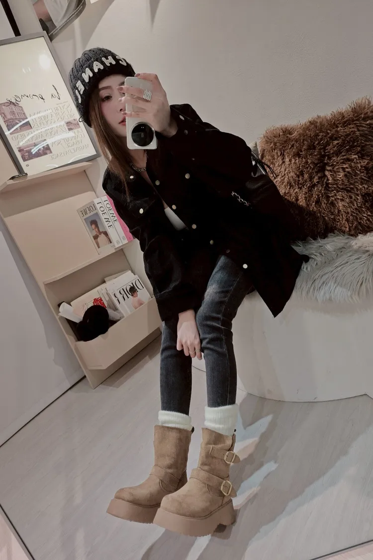 ✦圓頭厚底5公分 筒高18公分