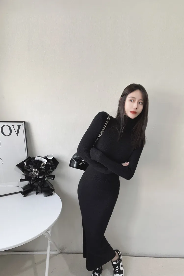 冬季必備長裙高領版型超保暖❤️合身版型顯露身材曲線有做腰身更顯腰瘦😍搭配一條腰鍊立馬出門怕冷的姐妹外搭麵包背心也超好看黑灰百搭兩色還不快包色🔥肩寬 31公分胸寬 38公分腰寬 29公分臀寬 36公分袖長 63公分裙長 133公分(不含領