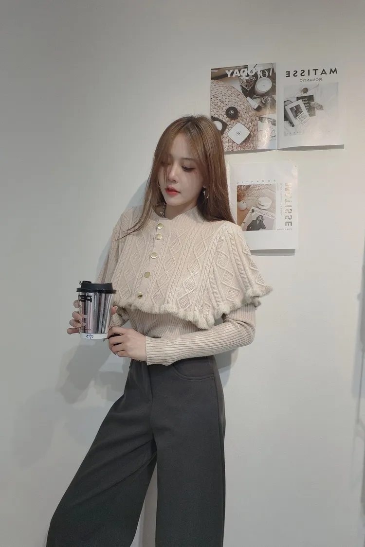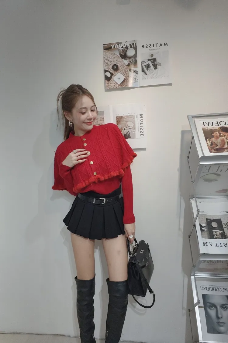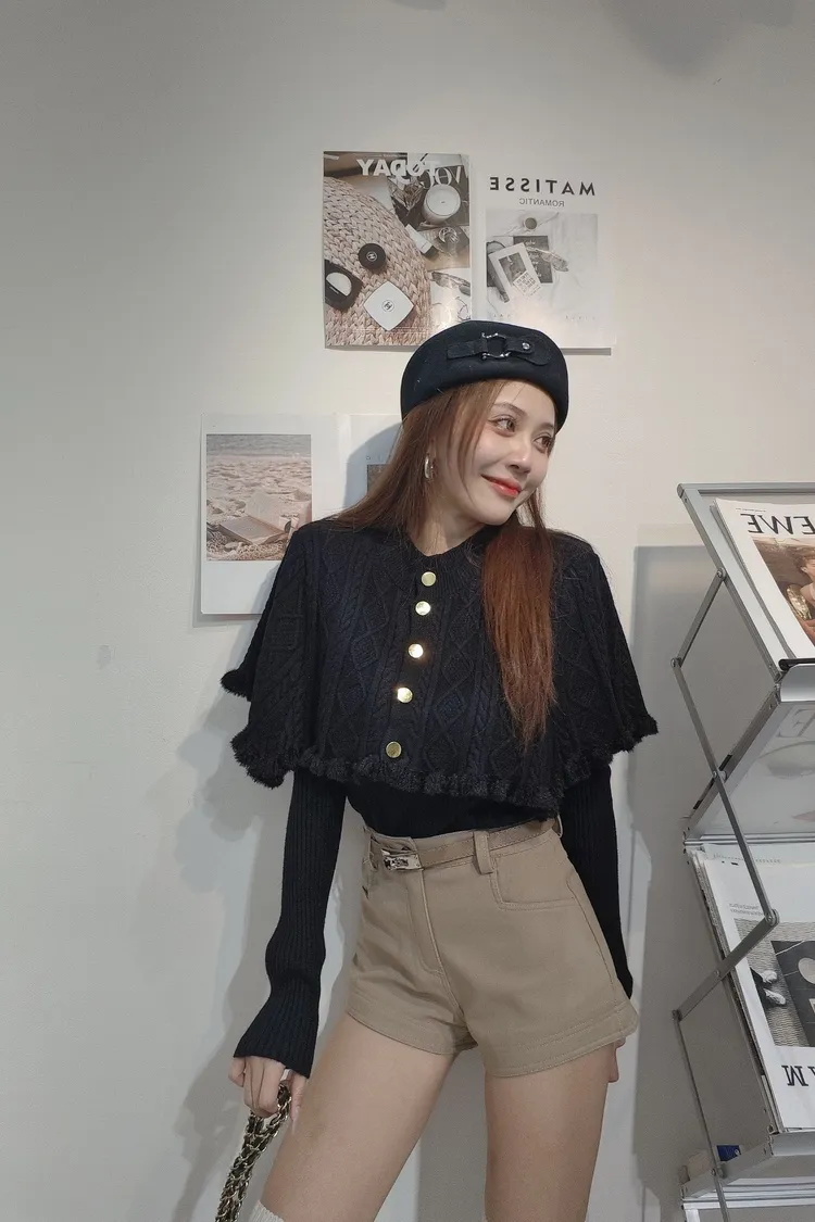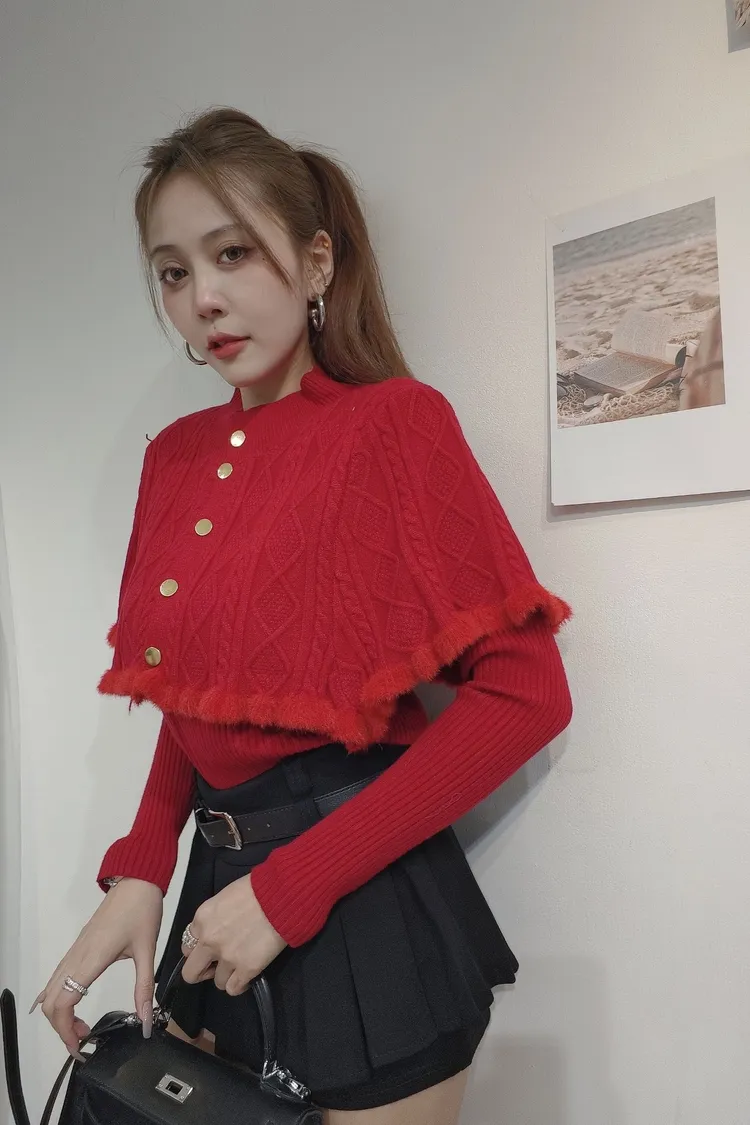 -彈力掛保證 -麻花針織穿出大牌范 -細緻保暖又親膚 -富家千金Miu miu瘋 -拆開穿也划算 顏色:黑 咖啡 奶茶 白 紅 斗篷 肩寬40 衣長30 上衣 大彈力 肩寬36 袖長57 胸寬42 側衣長44 前後衣長54