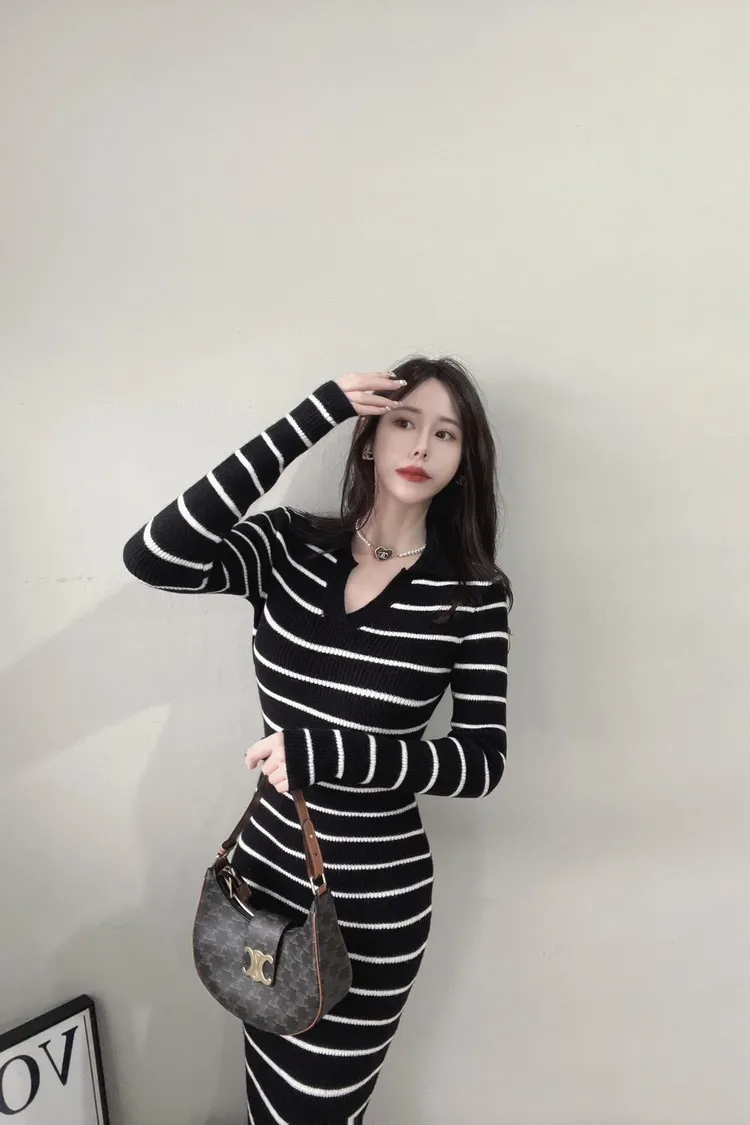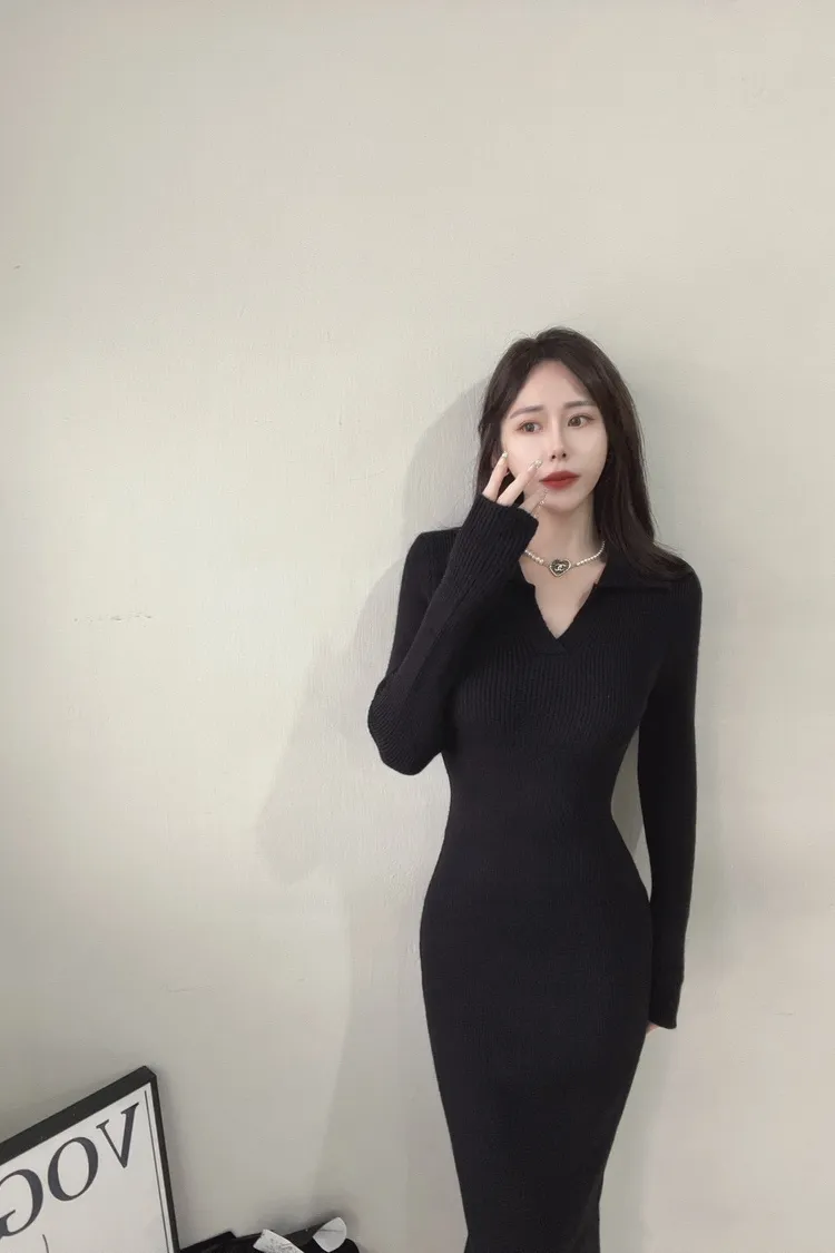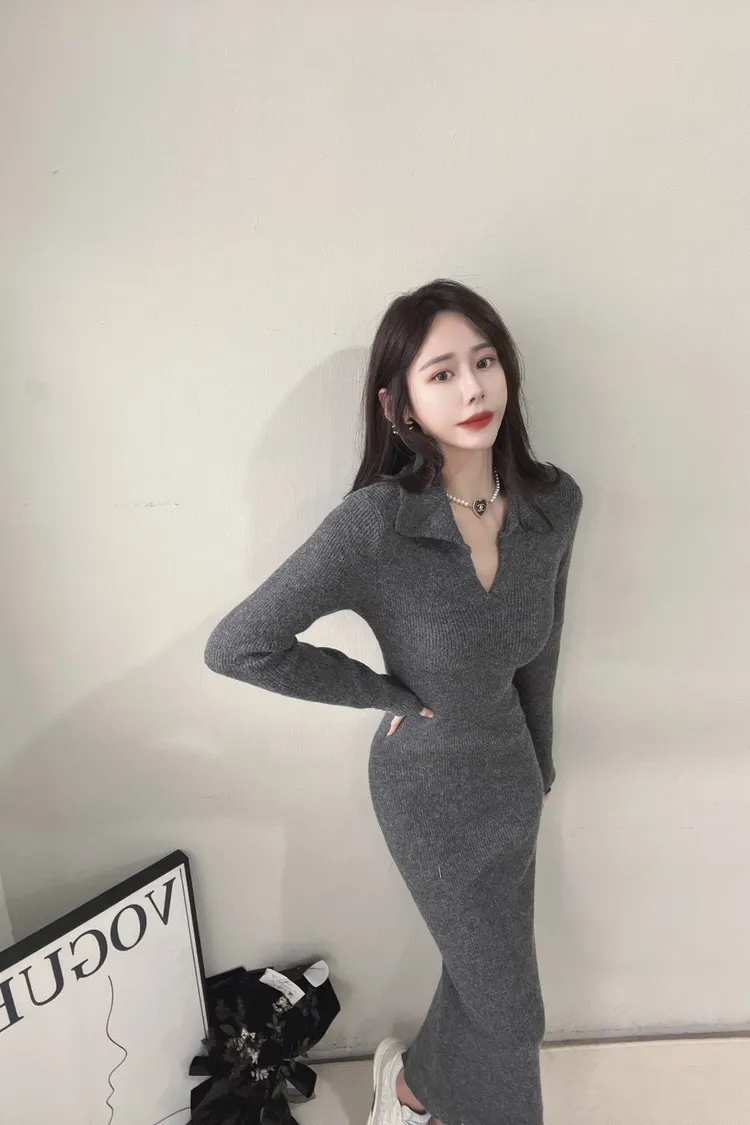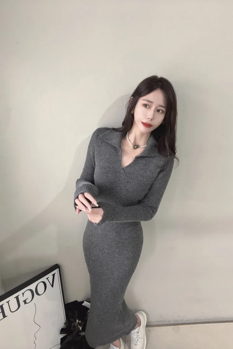 V領不僅顯臉小還顯瘦🏻羊絨材質保暖更加分不刺膚!收腰合身顯身材曲線🙈韓系慵懶質感超👍不管單穿疊穿都敲好看🤍肩寬 32公分胸寬 36公分腰寬 27公分臀寬 35公分袖長 62公分裙長 130公分(不含領)