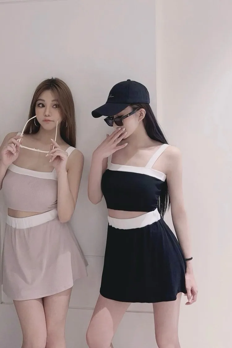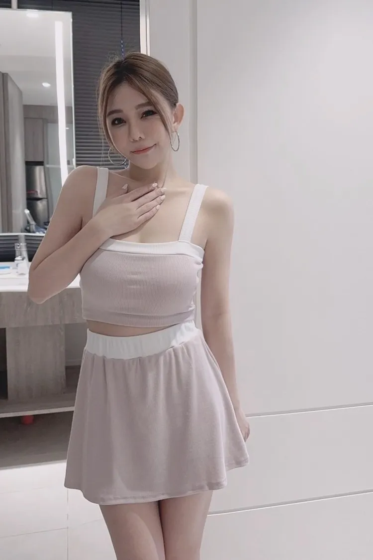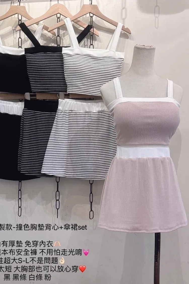可拆式厚胸墊 不用穿內衣✨短裙內有跟本布安全褲 不怕走光唷~鬆緊設計 穿到L沒問題👍衣長也夠 大胸部也不怕太短唷🥰「背心」胸寬28衣長含肩33「褲裙」腰寬28裙臀寬50裙長33內裡臀寬40內裡褲擋28內裡褲長28