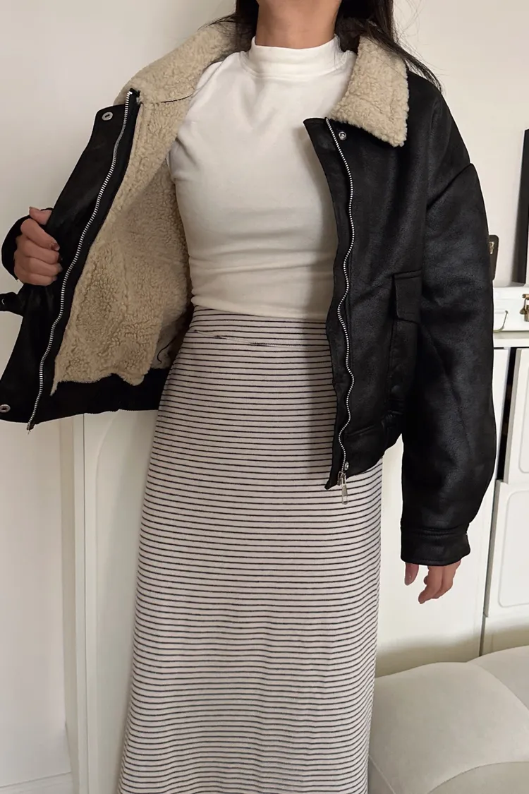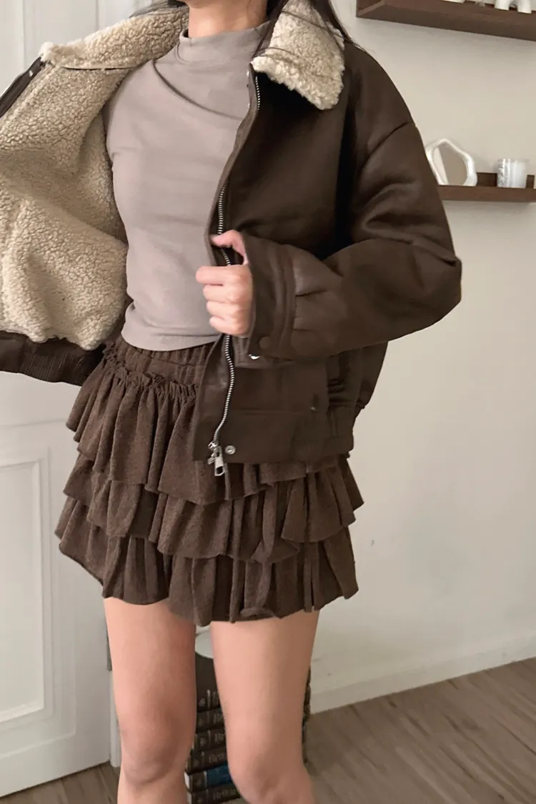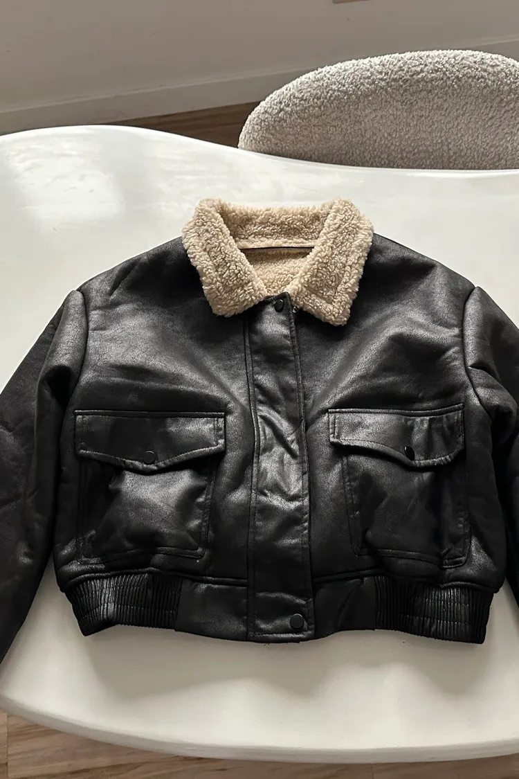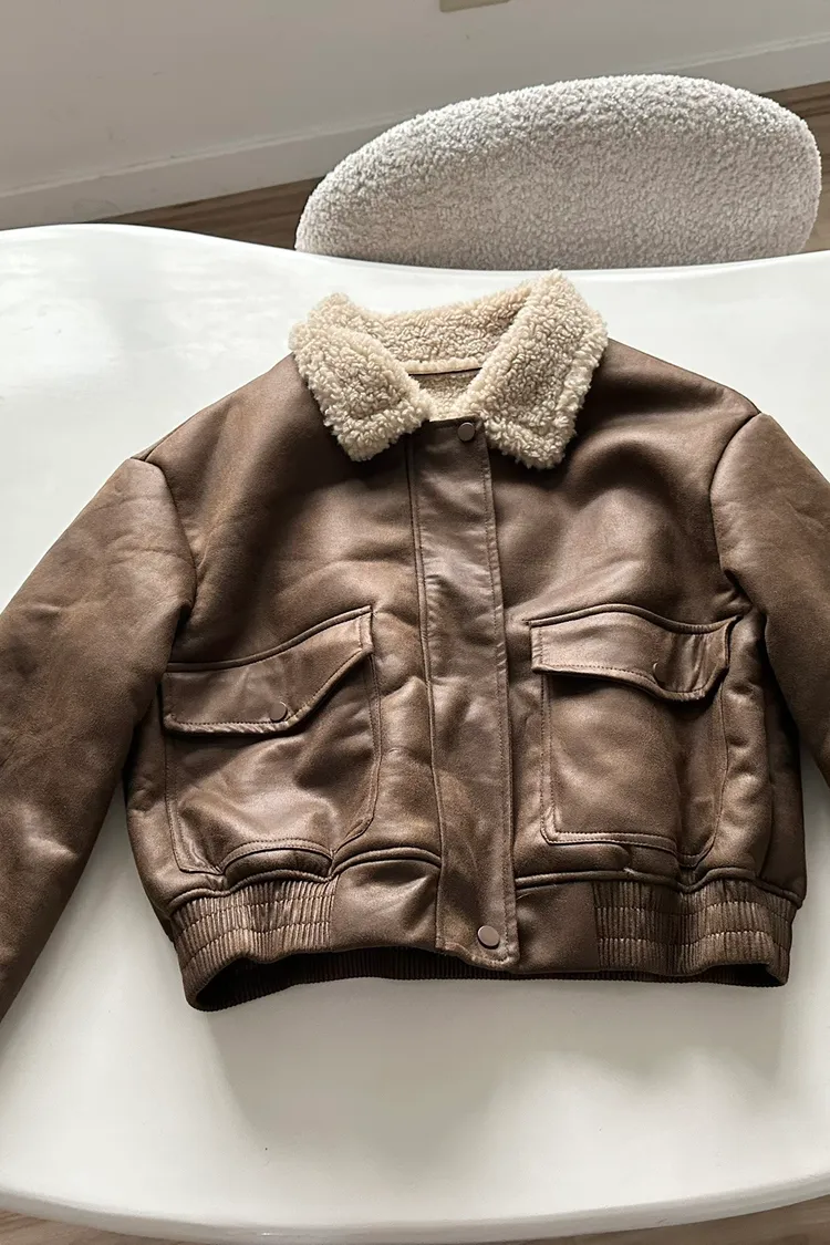 羊羔毛領裂紋皮外套
