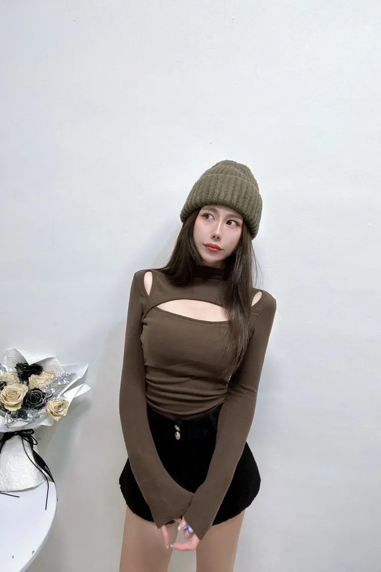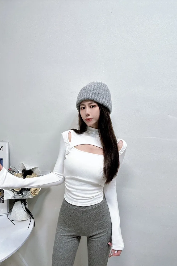 挖肩中高領設計上衣