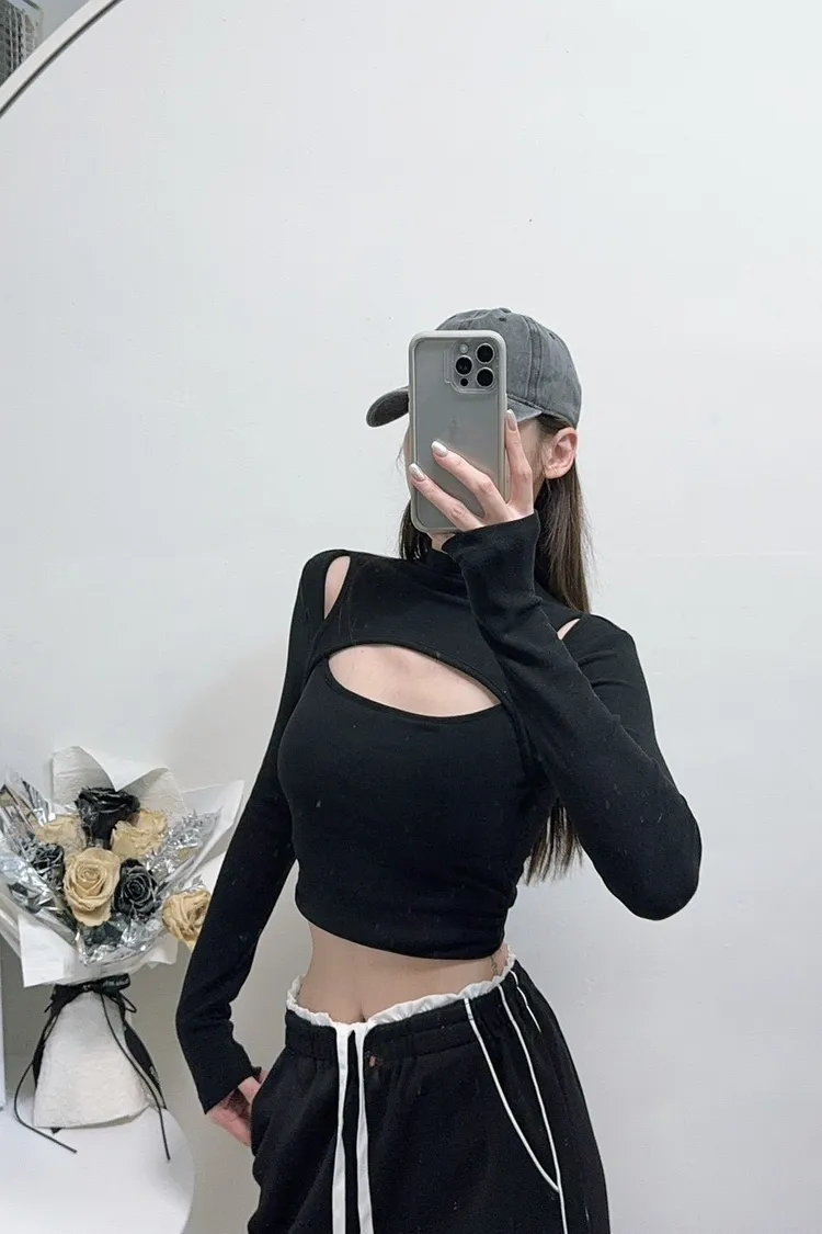 挖肩+胸前鏤空設計