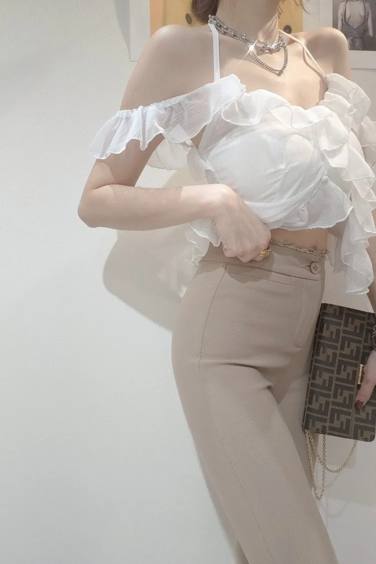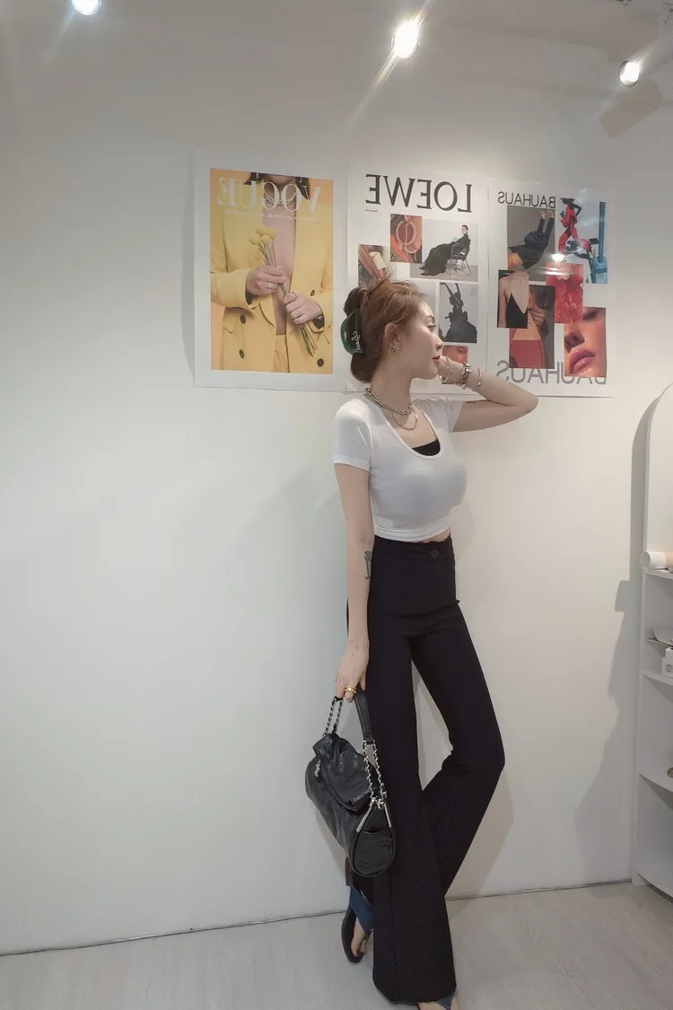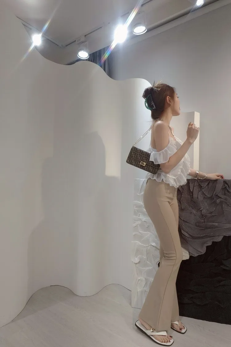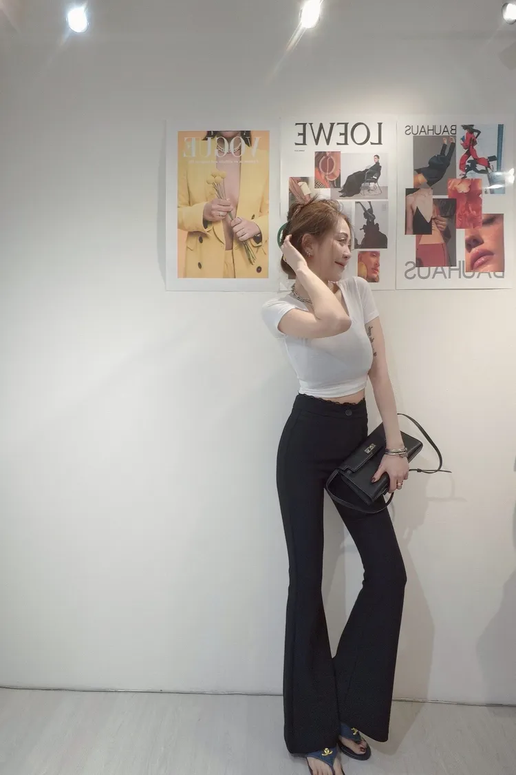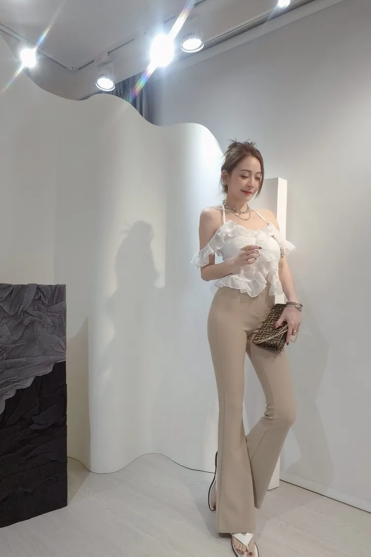 厚磅西裝料!杏色不透內褲面料微微彈力~正常選擇尺寸跟上蕾絲潮但不要太浮誇小小的花邊蕾絲誰都能接受高腰包腹舒服版型⚠️身高166示範褲長105公分⚠️160以下小個子可以購買100公分的褲長⚠️記得告知客服褲長好做登記褲長:長版105公分、短版100公分